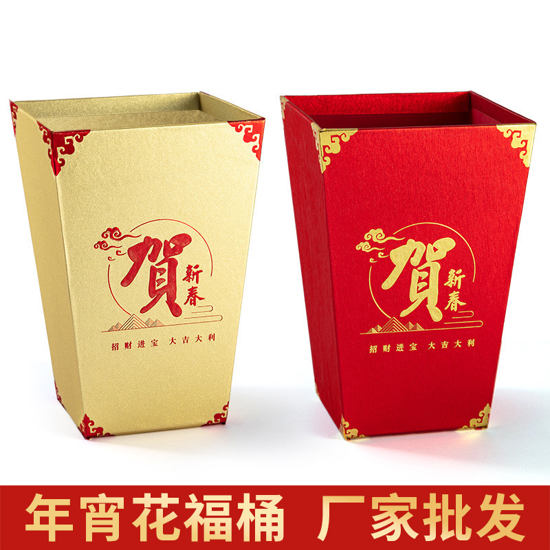 格都新年福桶おめでたい赤い福字抱っこ桶台形銀柳冬若い夜花生け花福桶卸売り