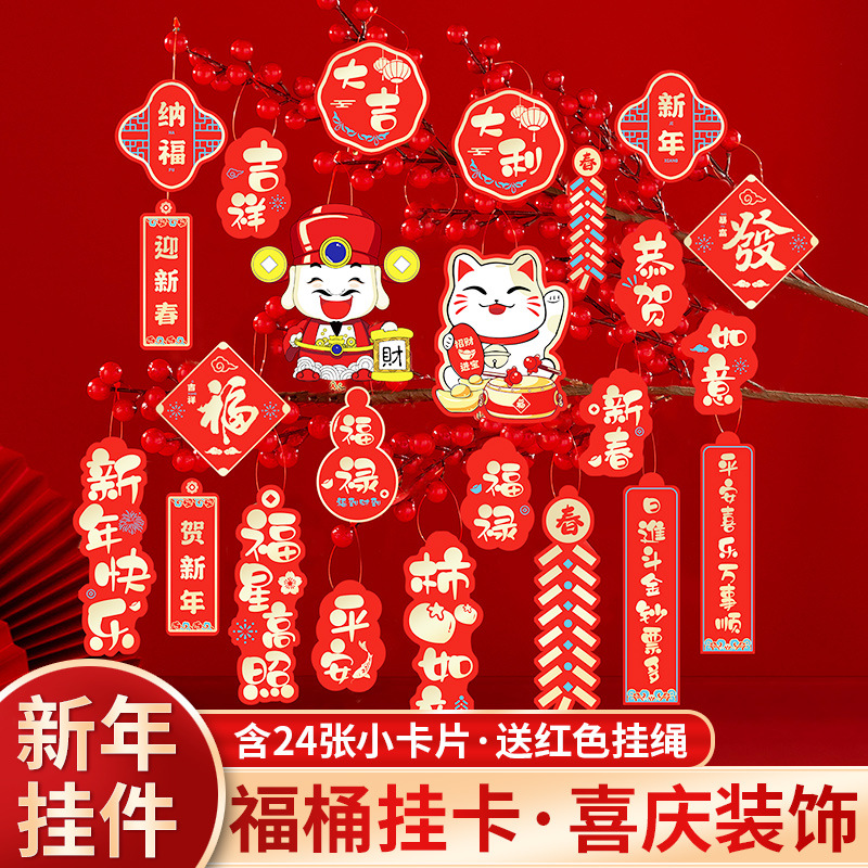 新年のお祝いの箔押しカード福桶盆栽装飾吊り下げ札吊り下げカードストラップ覚醒ライオン2025蛇年祝福掛けカード