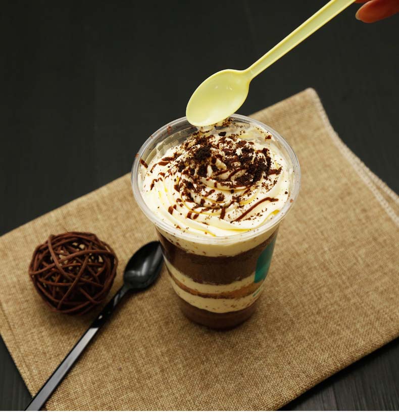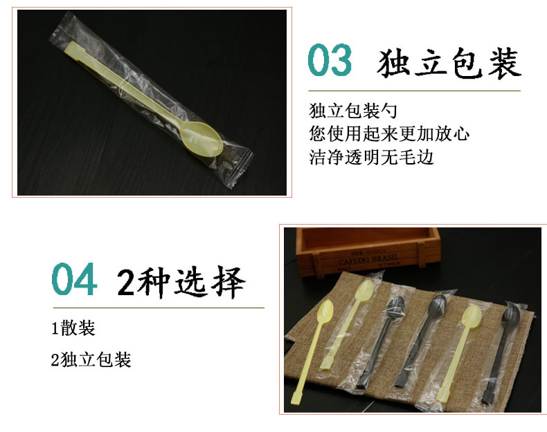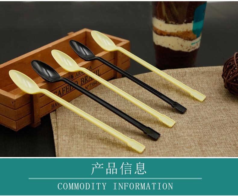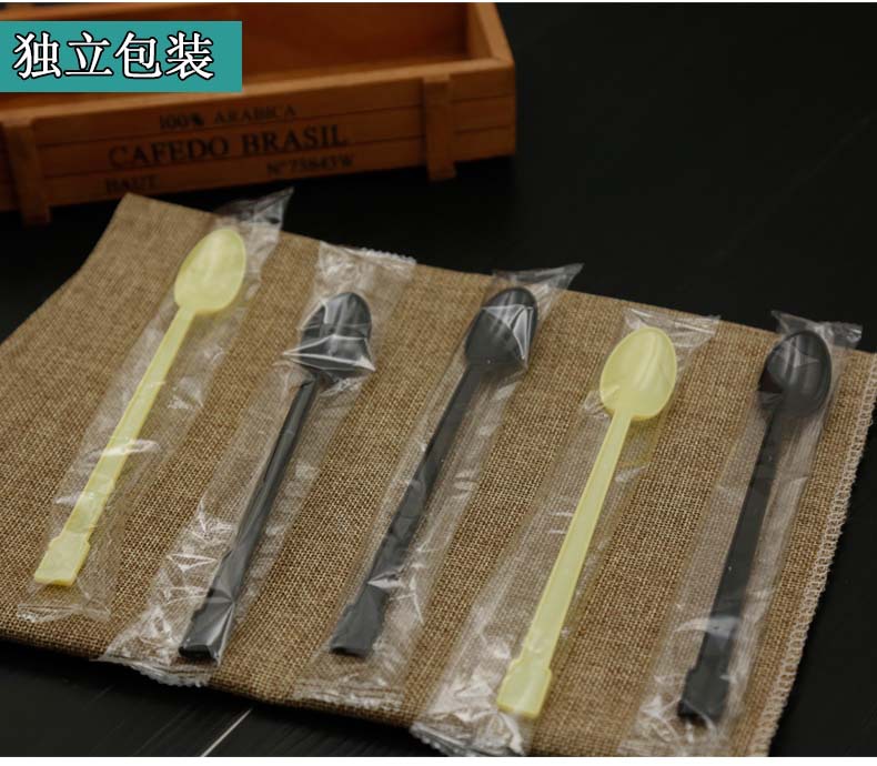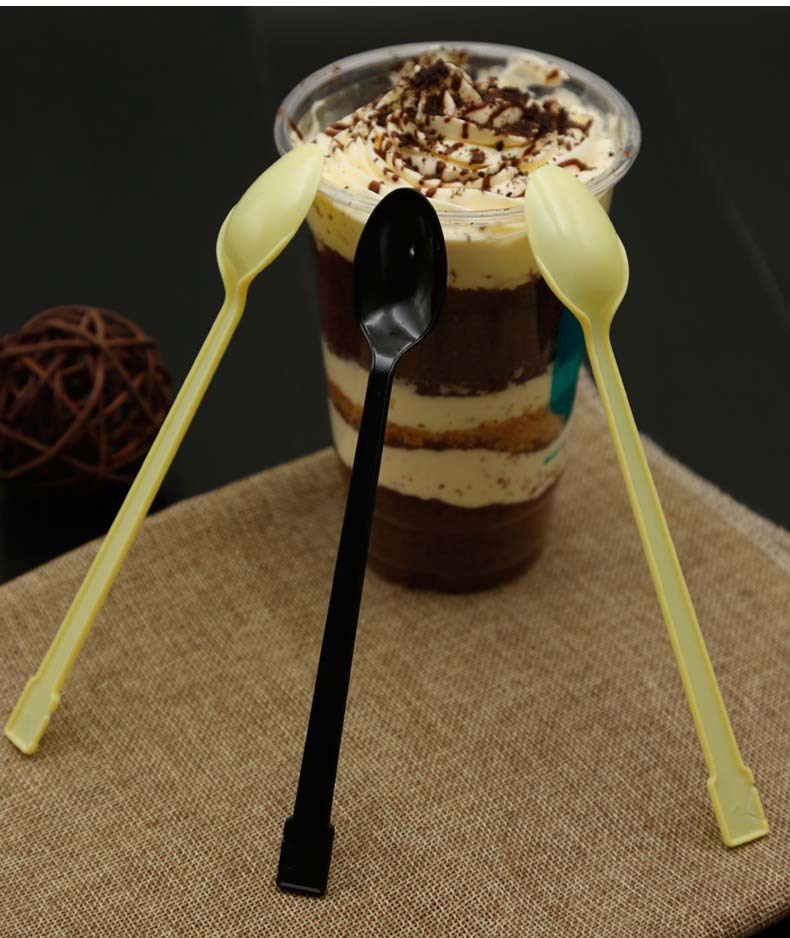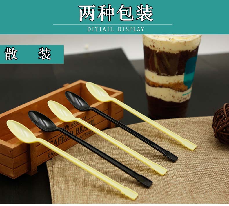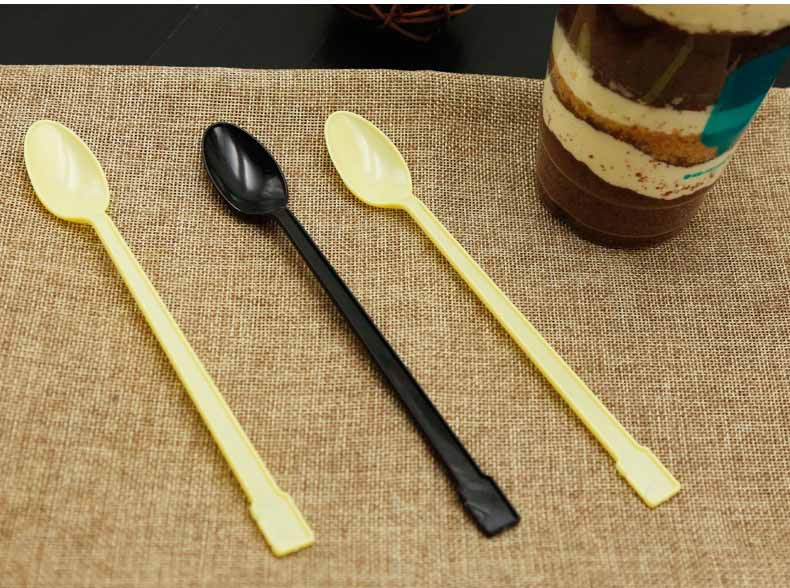 使い捨てのプラスチックスプーンを厚くして、ミルクティーを厚くして、長い柄のスプーンを厚くします。