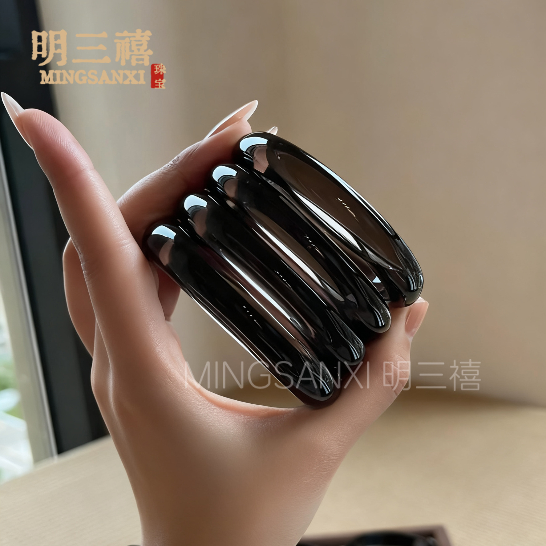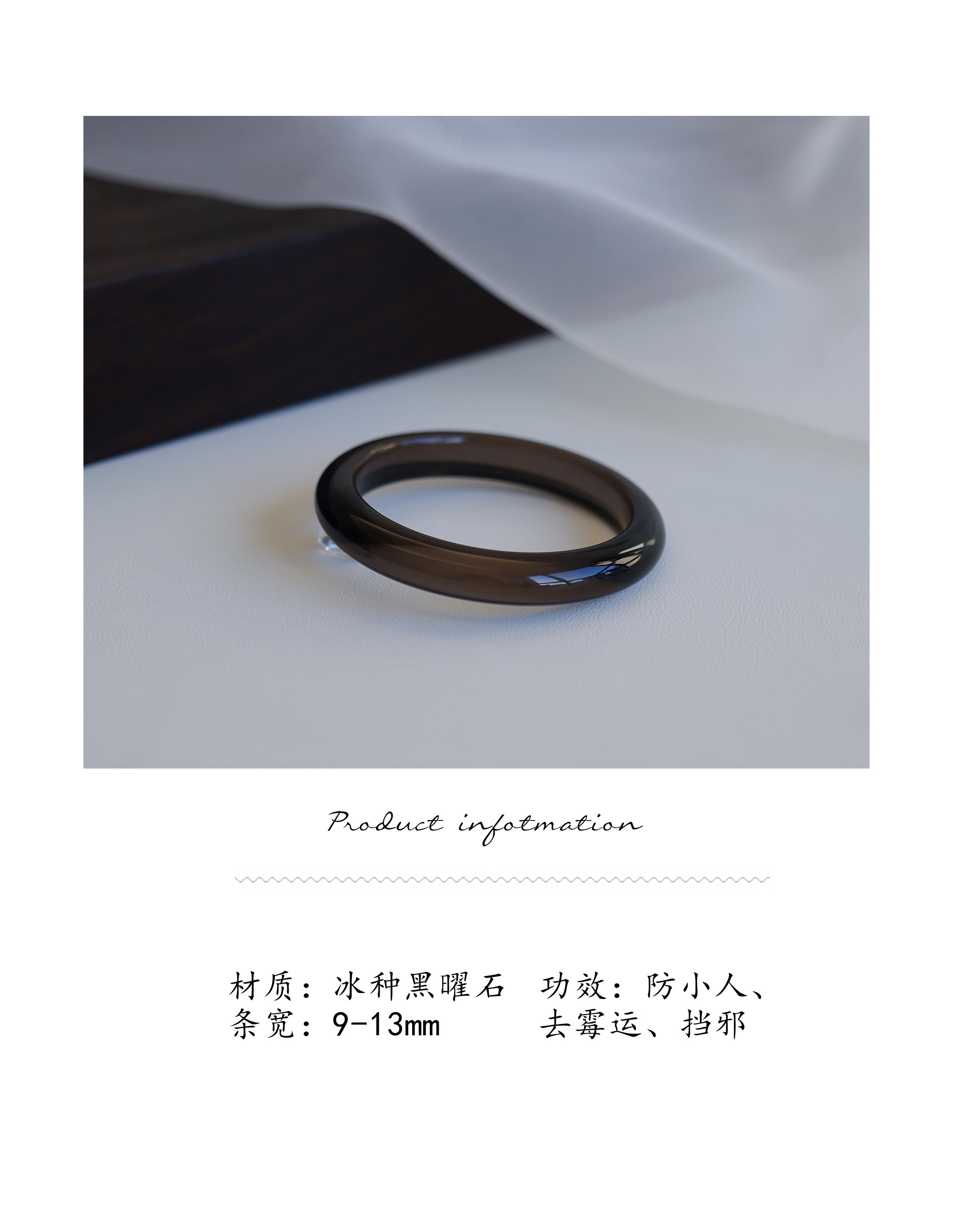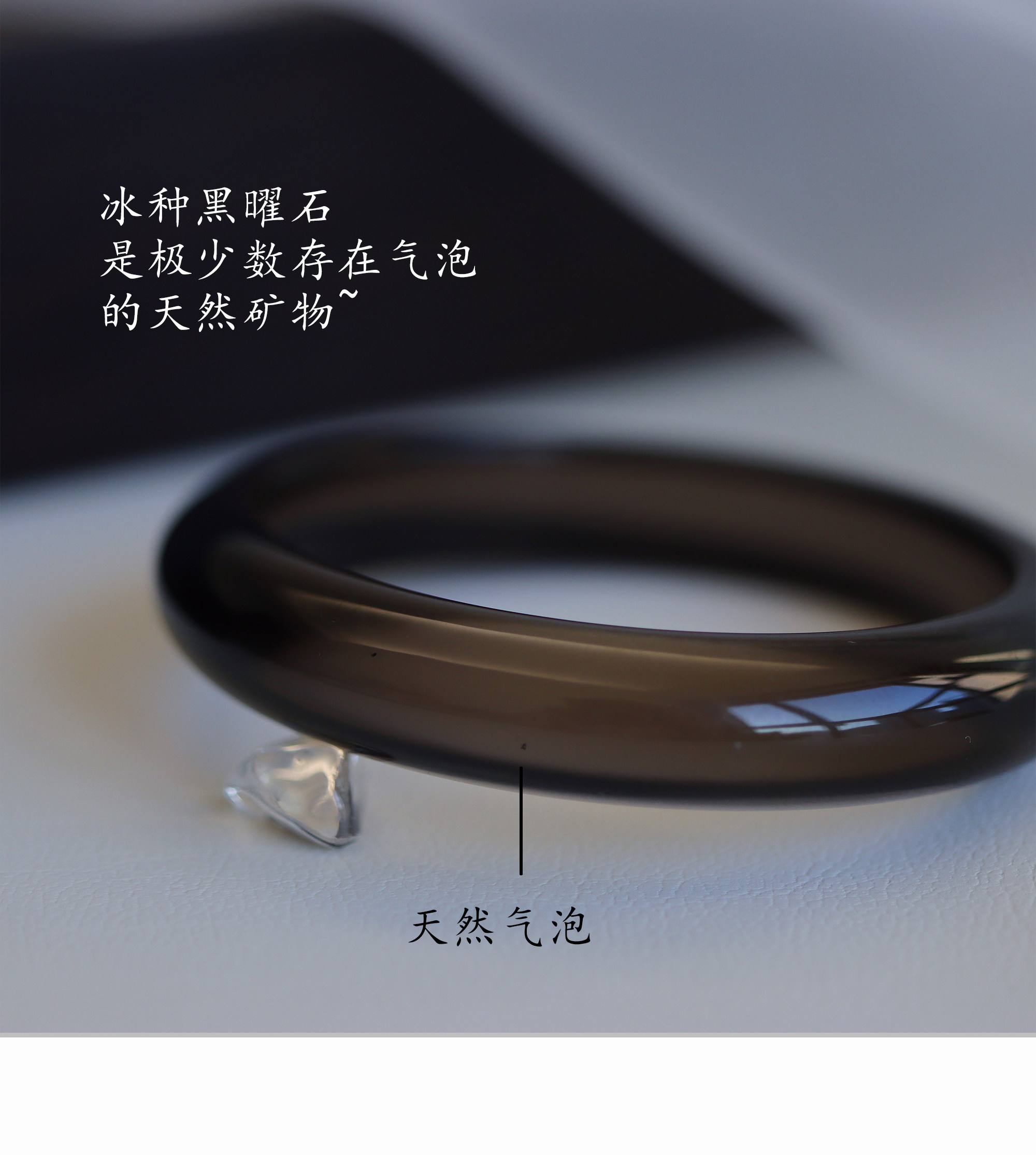 天然冰种黑曜石手镯 净体高冰透冰曜石玉石镯子男女款 冰茶晶显白