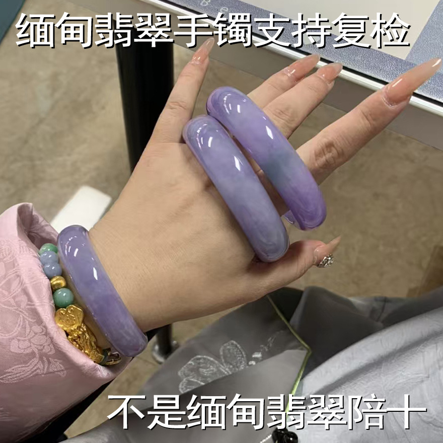 【証拠付き】ミャンマーの天然翡翠処理バイオレットのモチモチとした玉の正輪貴妃円ブレスレットの子供の金