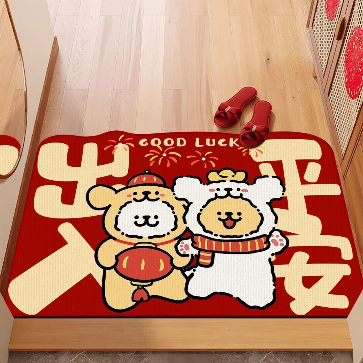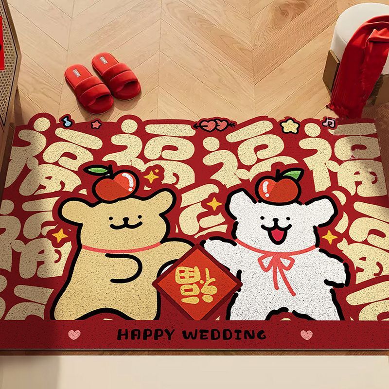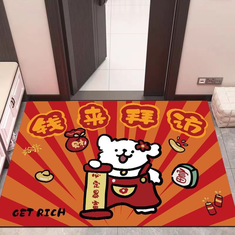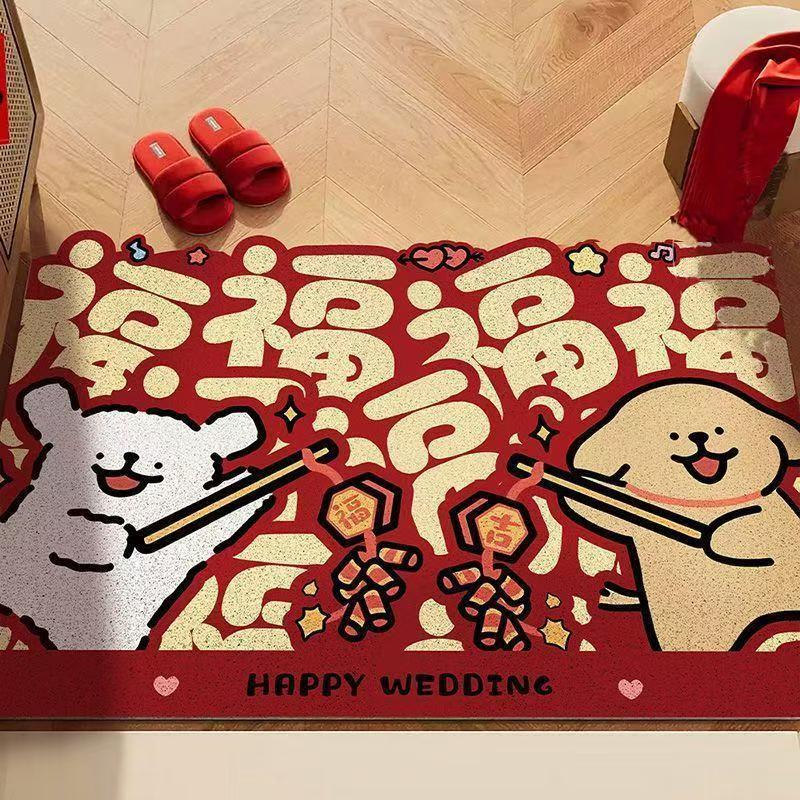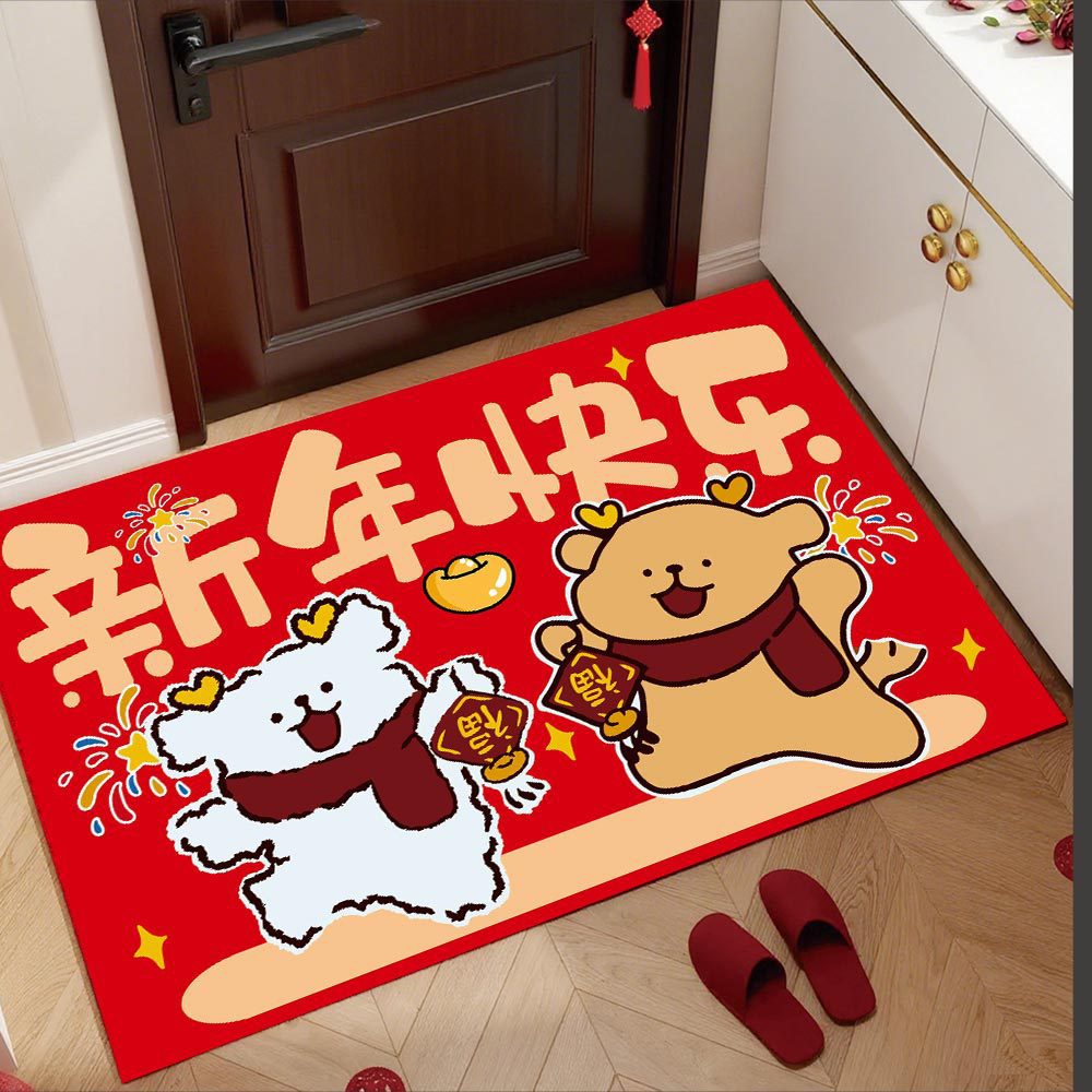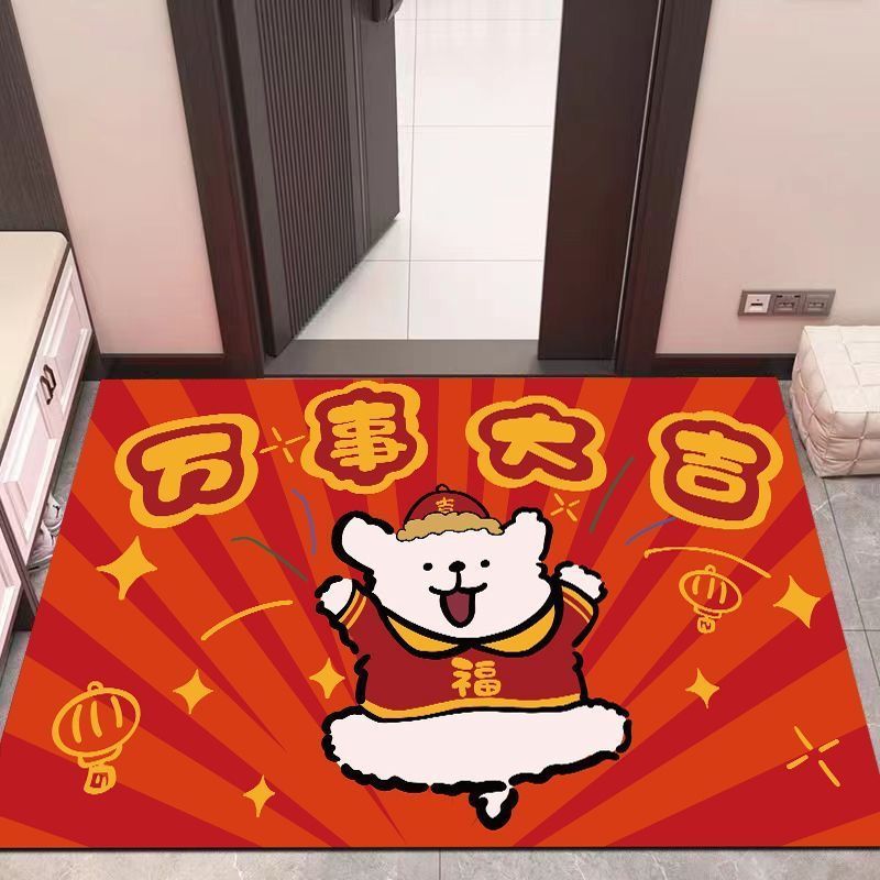 新春线条小狗入户门地垫家用耐磨可裁剪丝圈脚垫耐脏免洗红地毯