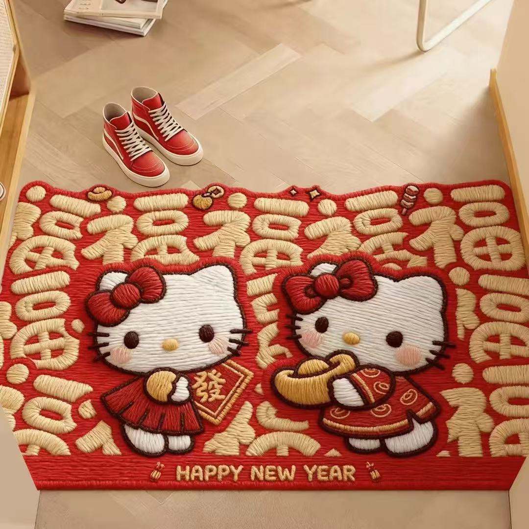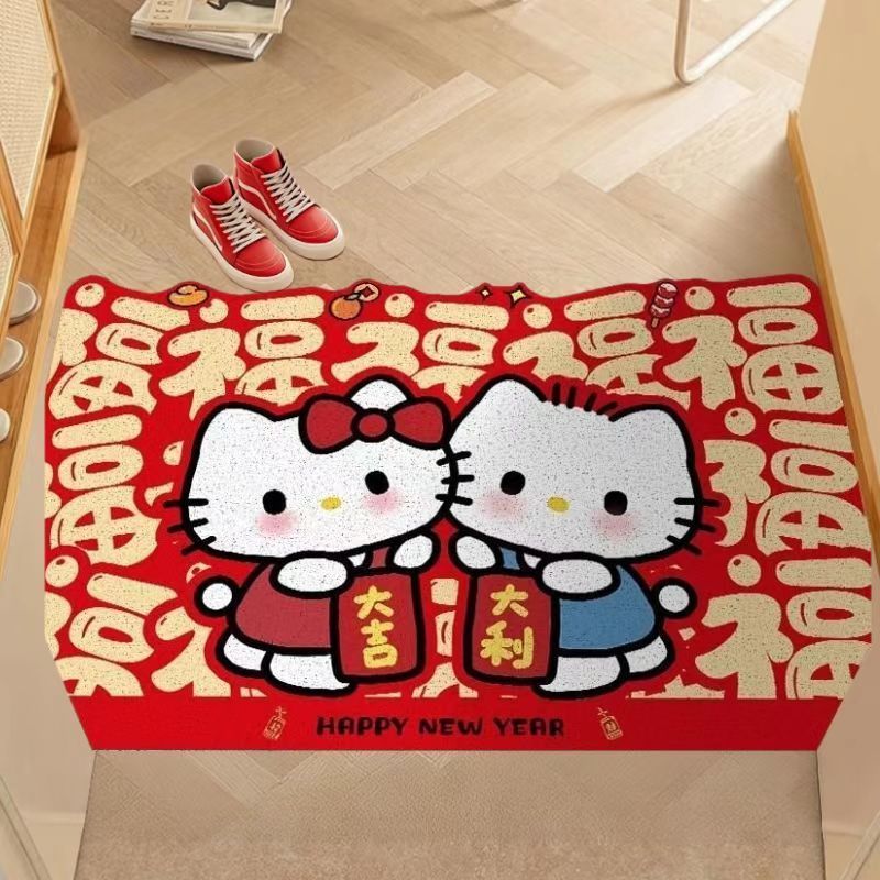 入户门地垫新年凯蒂猫丝圈地垫玄关进门地毯耐脏耐磨可裁剪地毯