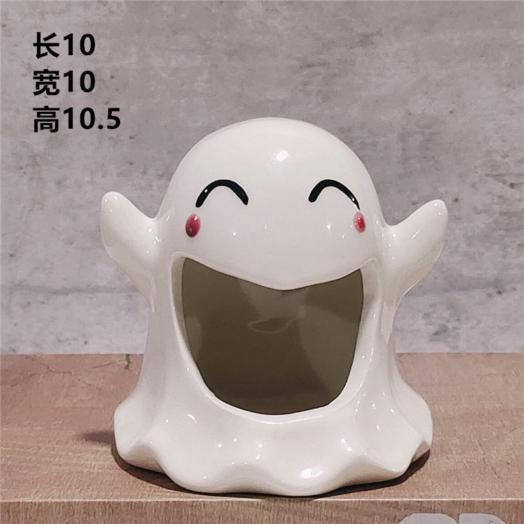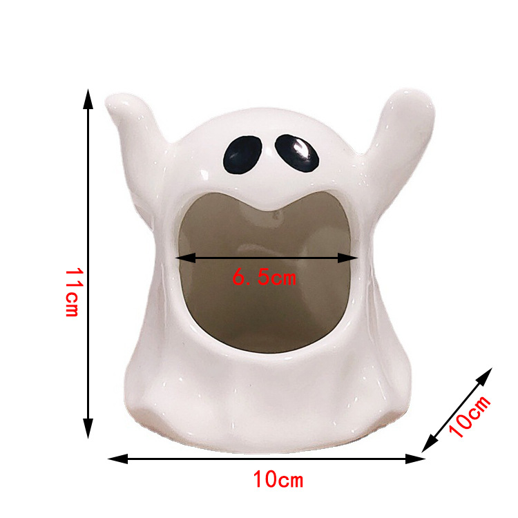 ハロウィーン陶磁器幽霊燭台器家庭デスクトップ香薫ろうそく容器ハロウィーン幽霊燭台置物