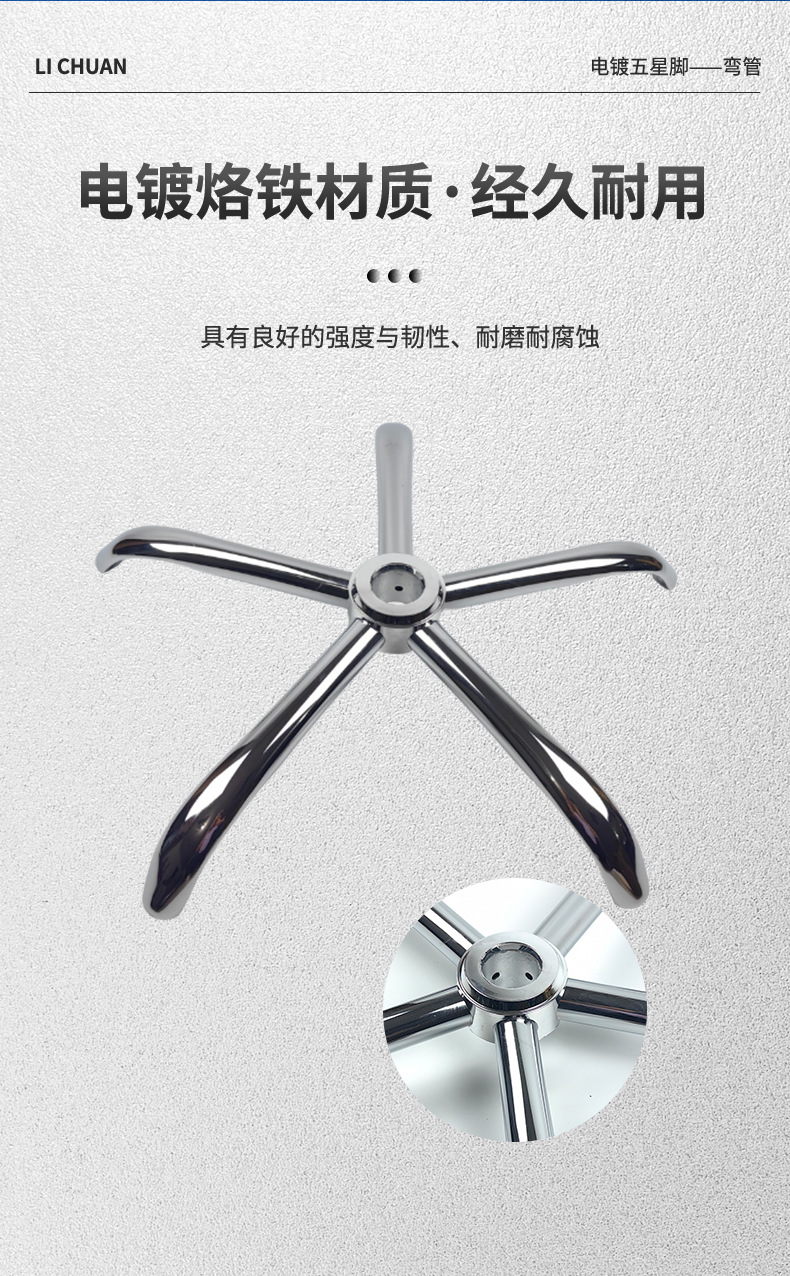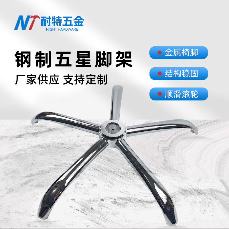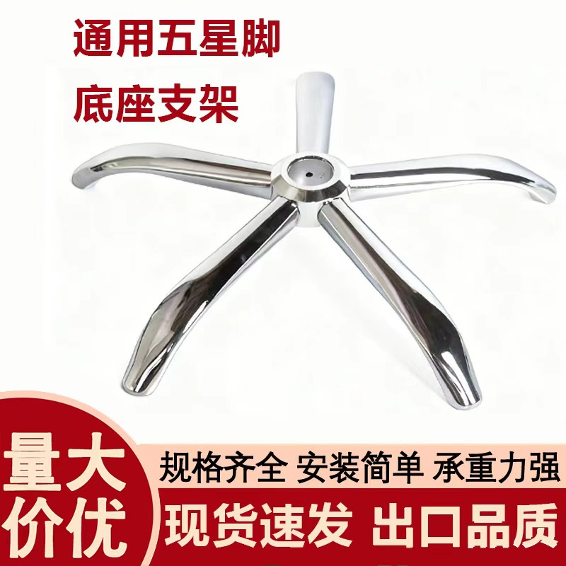 椅脚转椅配件加厚椅子脚底盘电镀五星脚架电脑椅底座钢制五星
