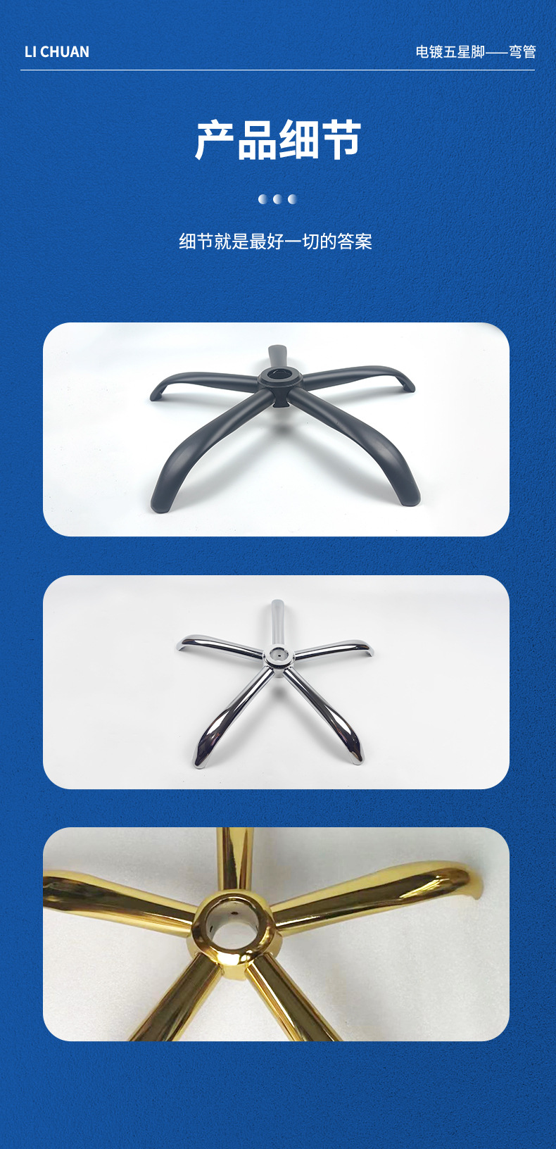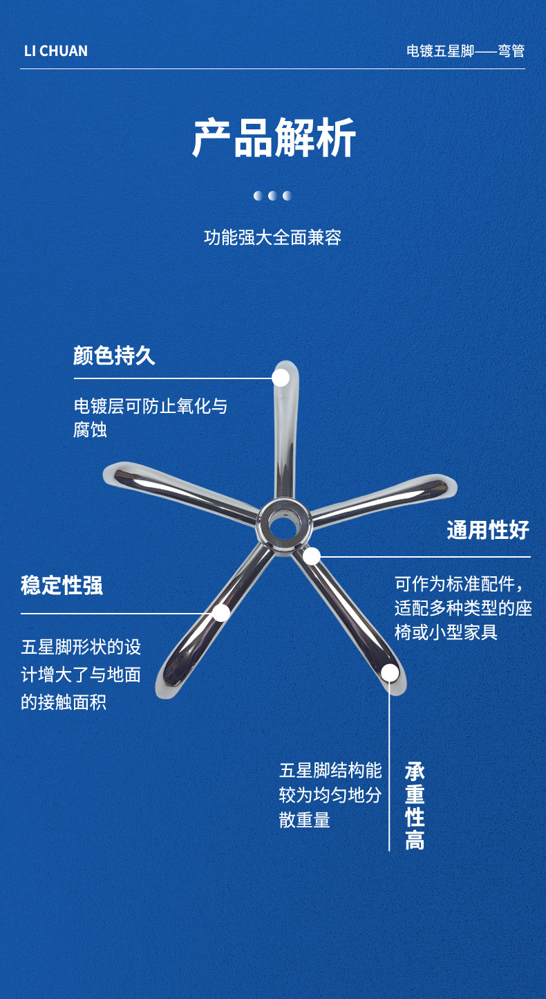 小包の回転椅子の部品を厚くして、椅子の足のシャシーをメッキします。