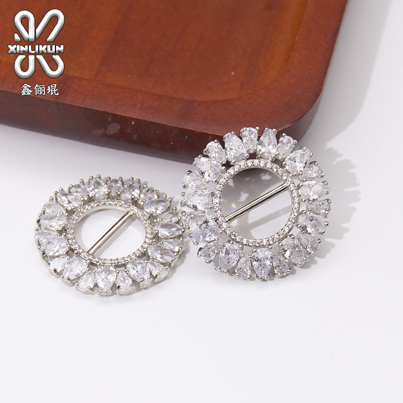 小型ジルコン円形の日字ボタンの高級服の部品のコートのベルトのシンプルなシルクのバックルの補助材料の卸売り