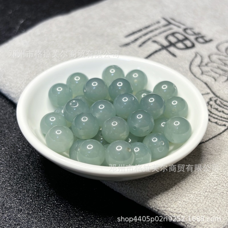 高氷種翡翠色玉珠浅晴水円珠散珠透白氷玉珠ブレスレットネックレスイヤリングビーズ