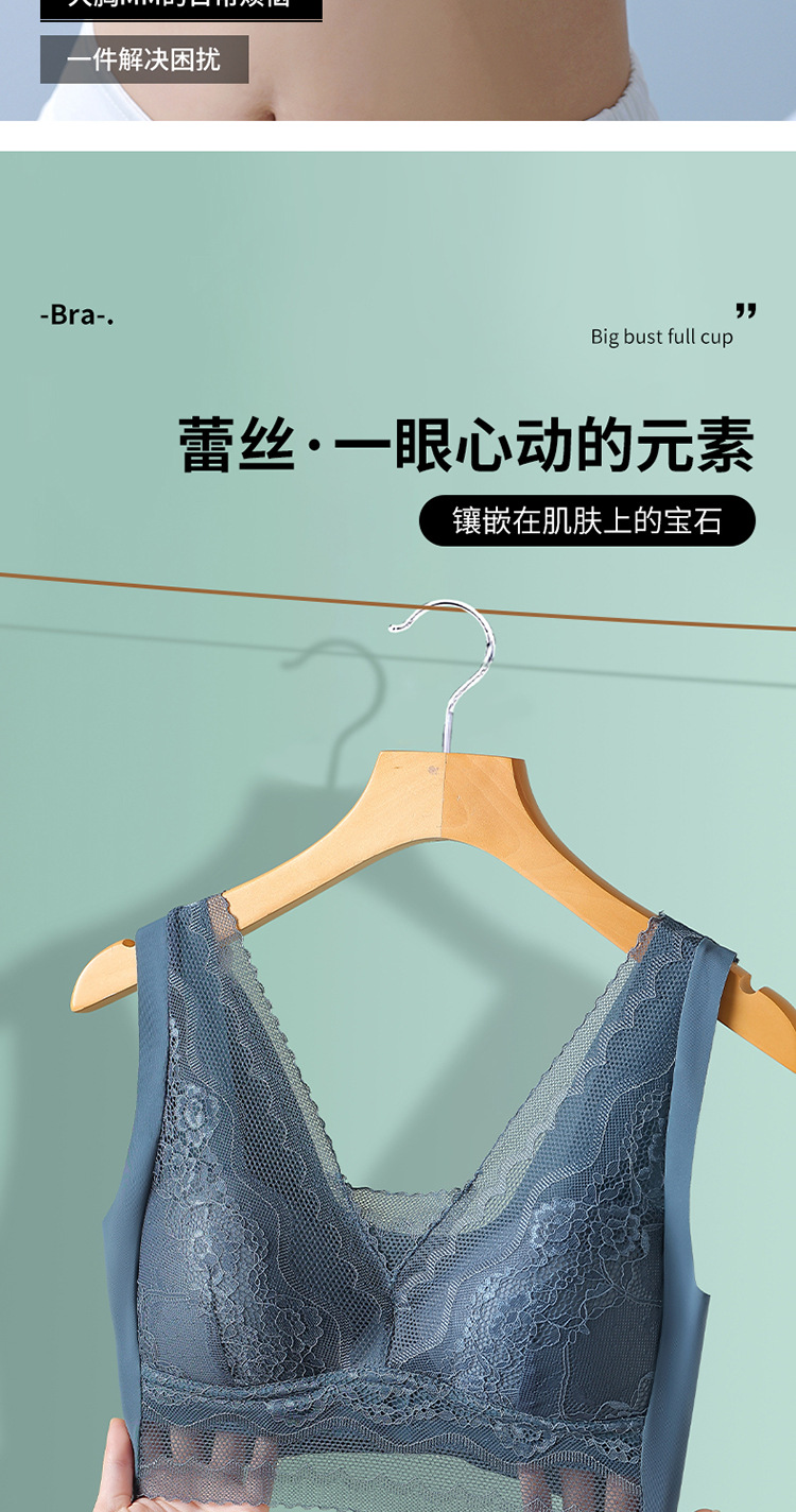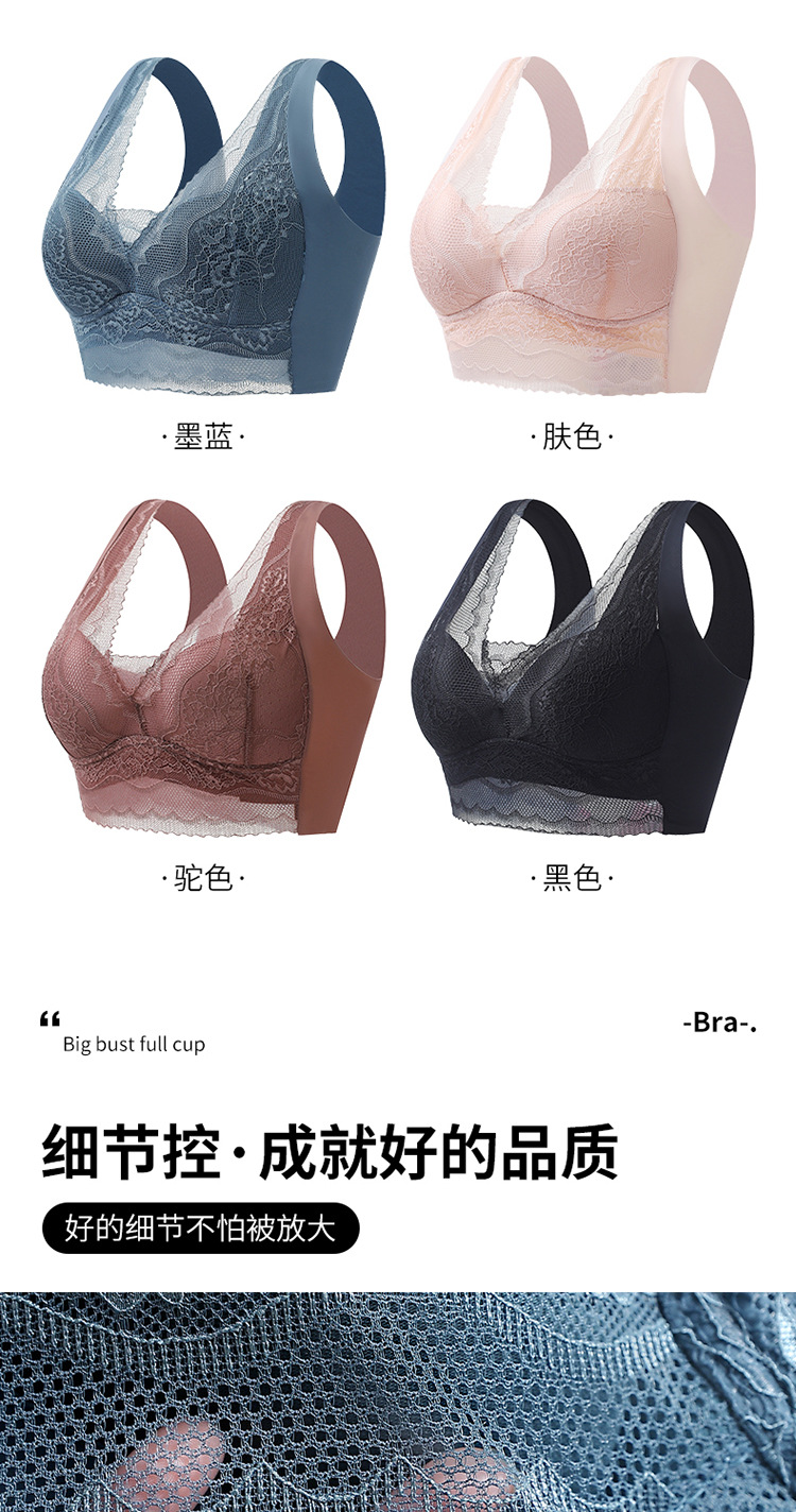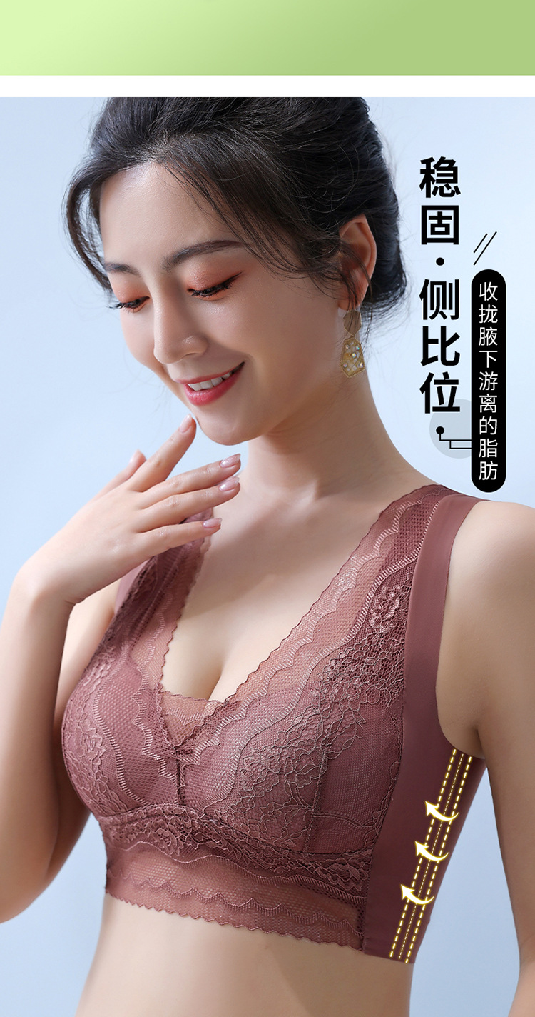 Vネックレース無痕美背下着女性大胸顕小防光女性ベストが睡眠ブラジャー女性を集めている
