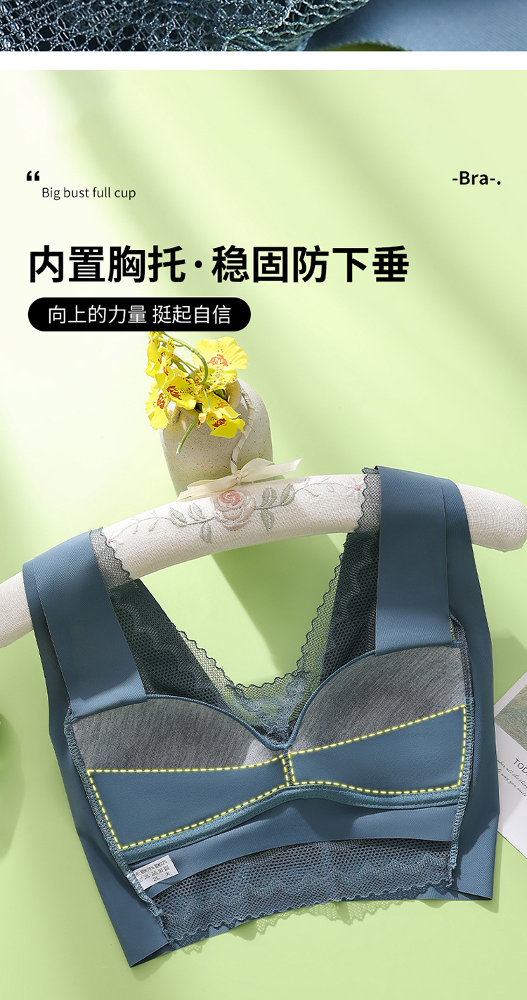 女性用レースシームレスベスト、固定美背中、ワンカップ胸巻き、大きい胸、小さく見える、ノンワイヤー、女性用大きいサイズ下着