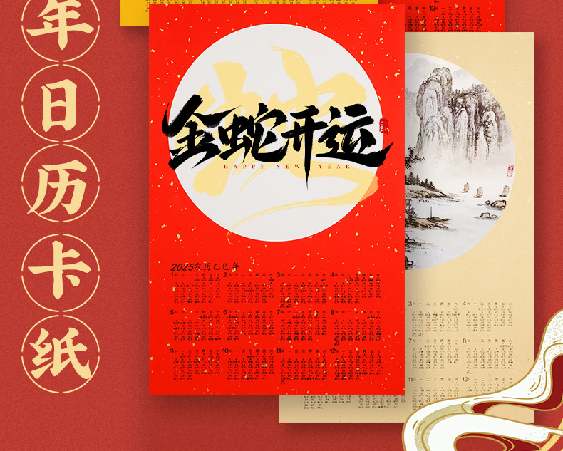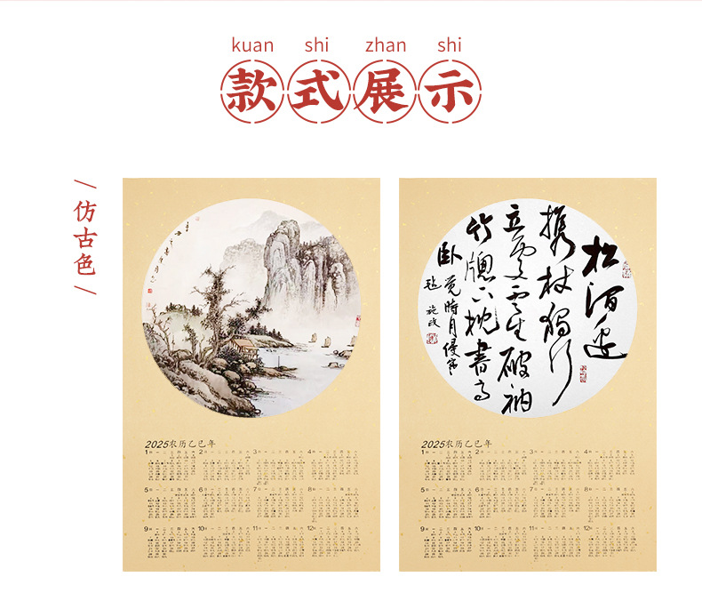 2025年カレンダー宣紙紙紙紙宣紙カレンダーソフトカード円形角型レンズ宣紙国画書道