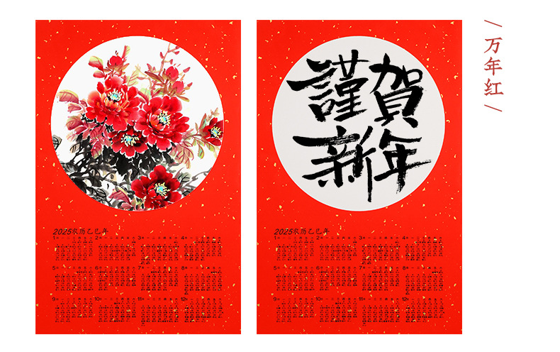 2025年国風カレンダー中国風宣紙空白紙半熟万年紅作品紙蛇年創意