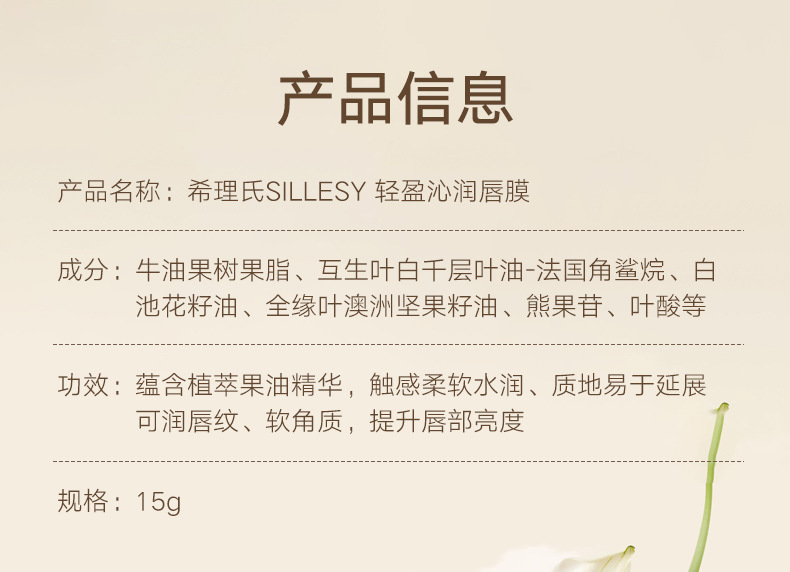 製品仕様 Sillesy ライトウェイト モイスチャライジング リップ マスク