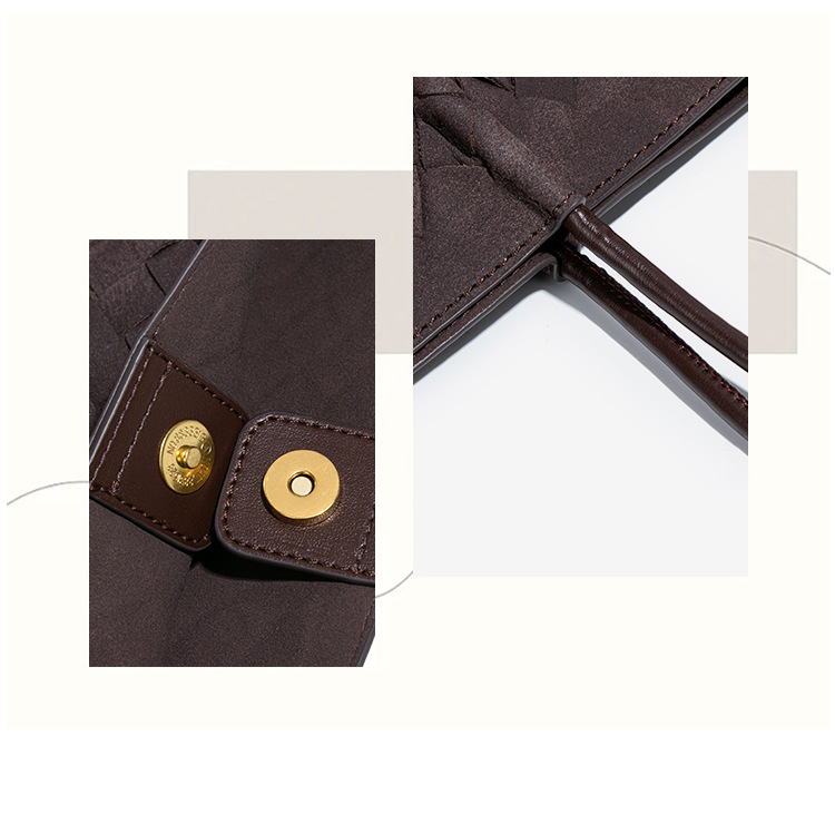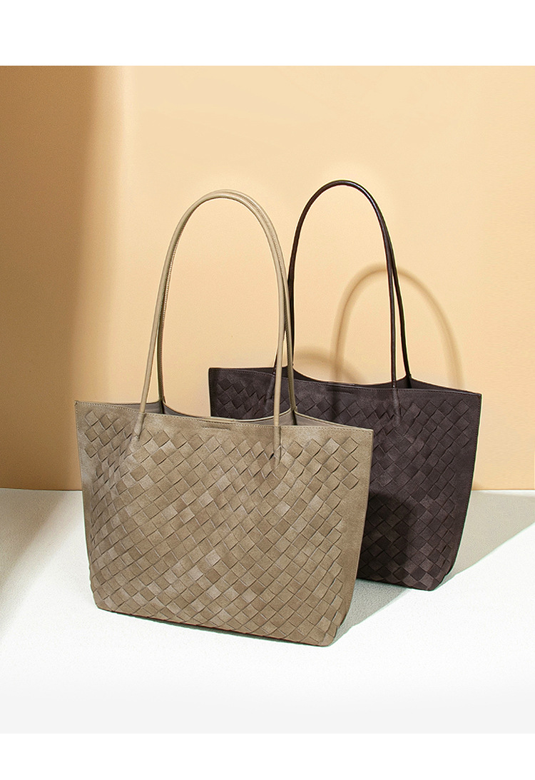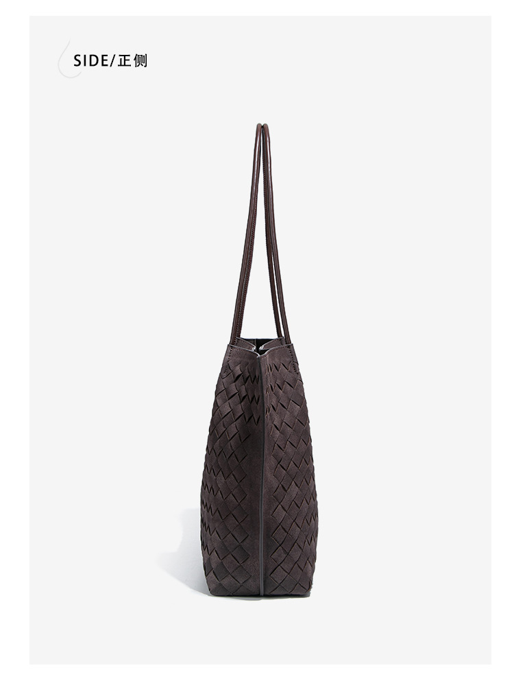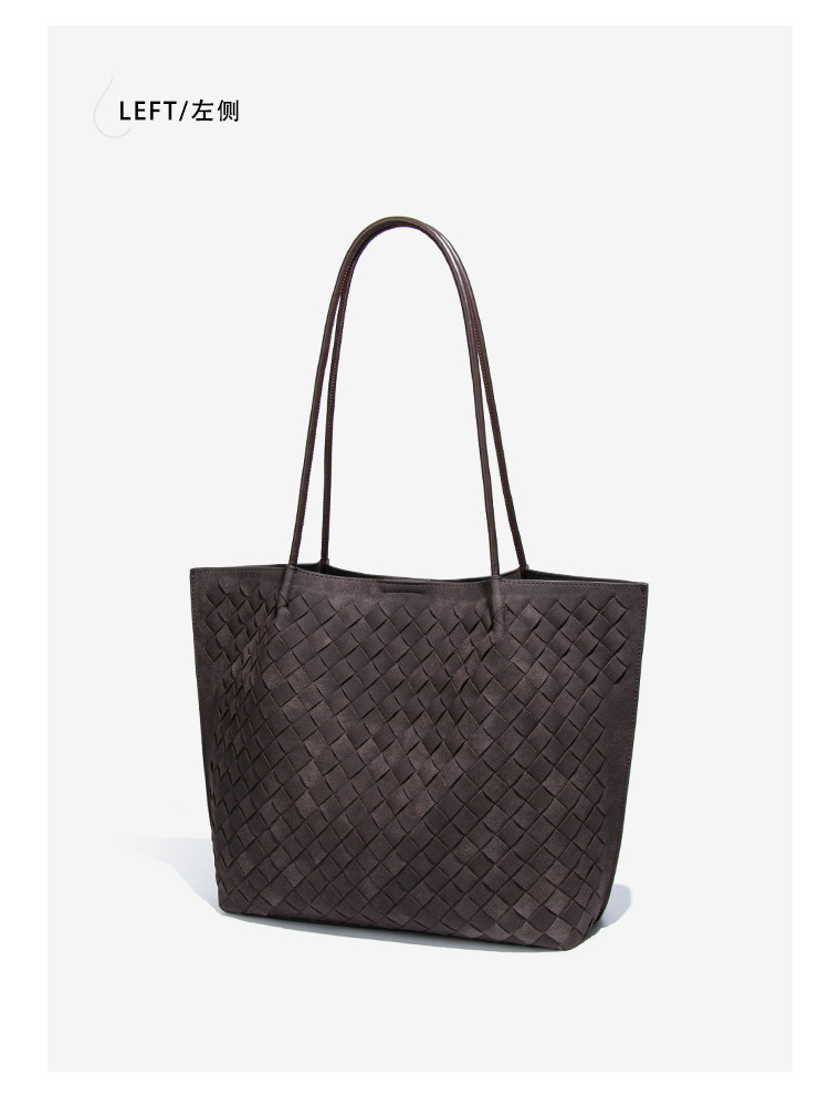 高級感大容量バッグ女性編みバッグ片肩斜めショルダー脇下バッグバケツバッグ研磨材スエード革トートバッグ