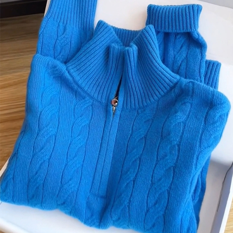 自留高货克莱因蓝半拉链麻花套头毛衣女25春秋新款长袖针织衫上衣