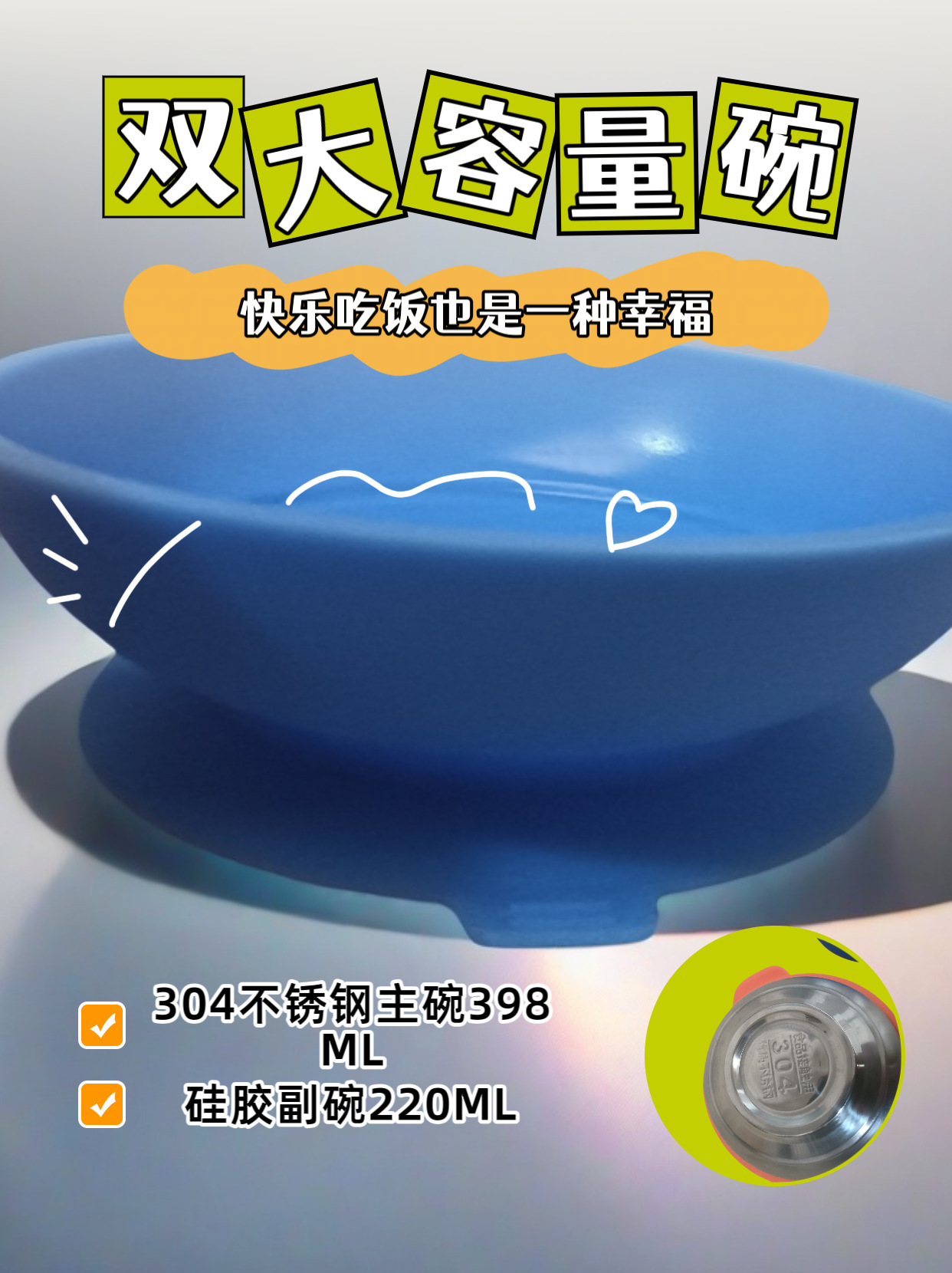 高齢者用高齢者用品、シリコン補助ボウル、こぼれ防止ボウル、ツーボウル、一体型栄養補給ボウル、水入り保温ボウル、丸型