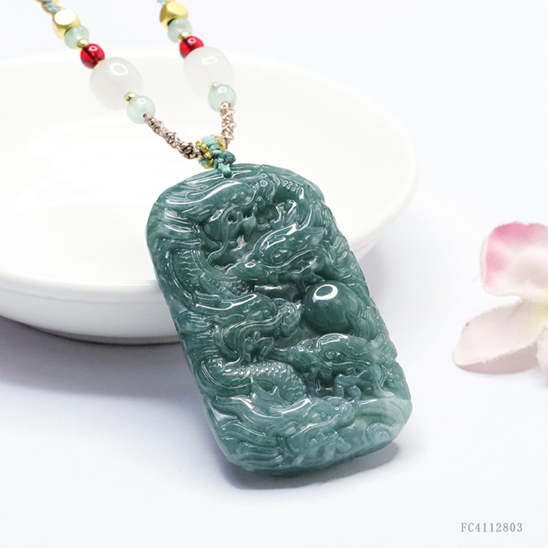 天然A級翡翠九龍守護ペンダント干支龍青水ネックレス卸売代発送S4112803