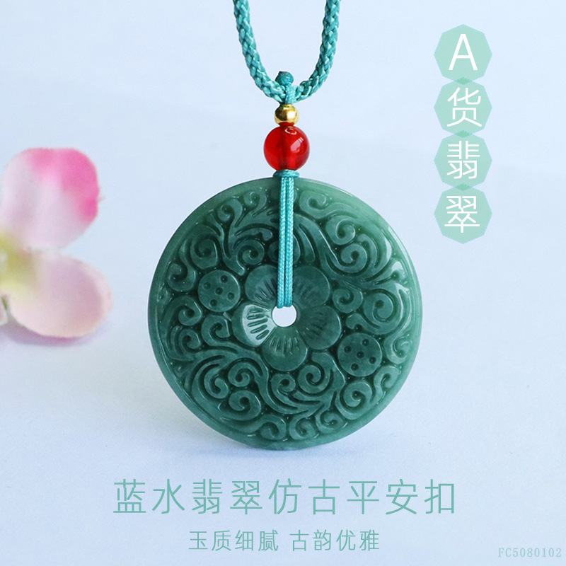 眷钰 天然A货翡翠蓝水仿古平安扣挂件玉石直播寺庙批发S5080102