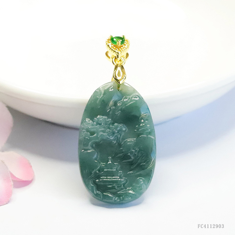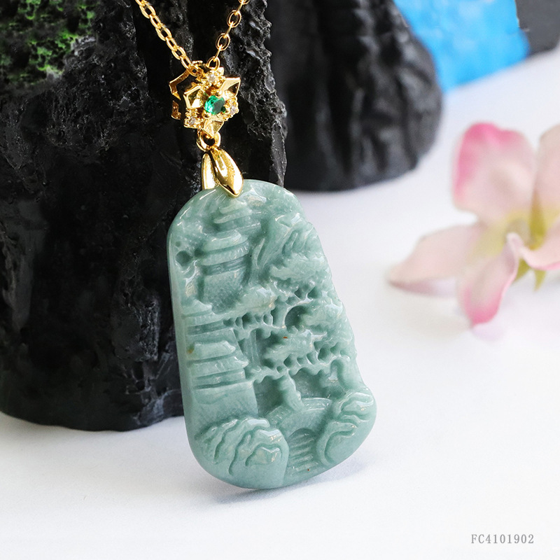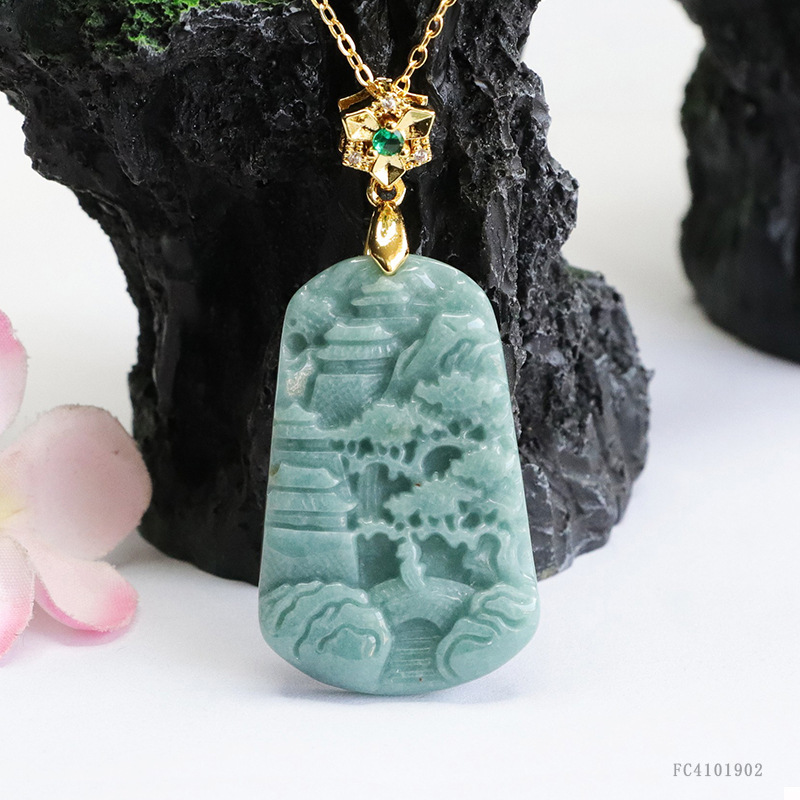 天然A級翡翠ブルーウォーターランドマークジェムストーンペンダントネックレス中国風ジュエリー卸売S4101902