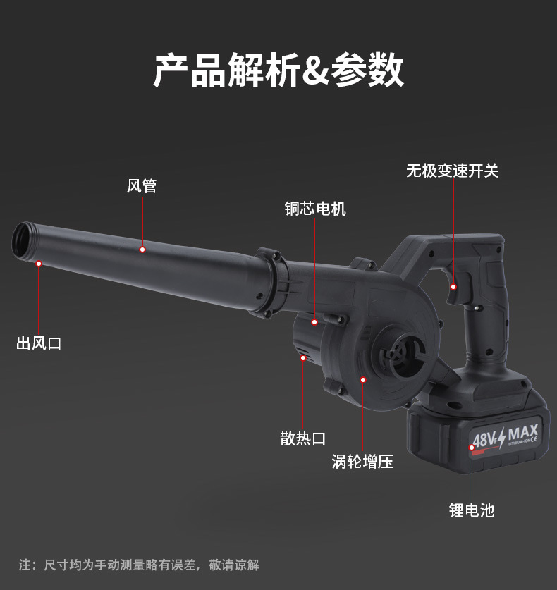 工業級携帯リチウム電気暴風機充電式無線送風機ハイパワータービン暴力吹雪ドライヤー