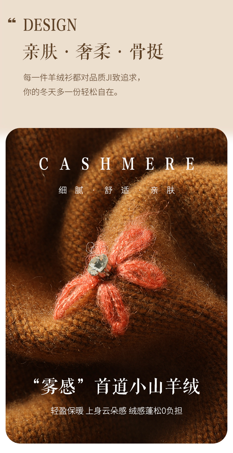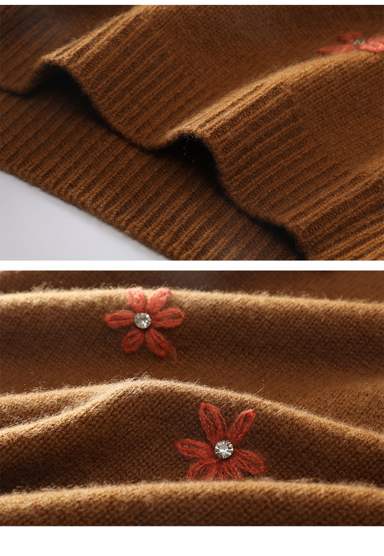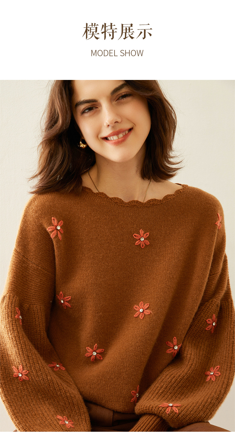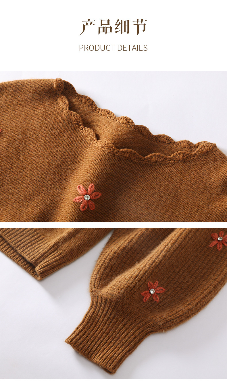 花の丸首の山のカシミヤのシャツの2024秋冬の新型の女性のレースの底のシャツの韓国系の風の灯籠の袖のプルオーバーのセーター