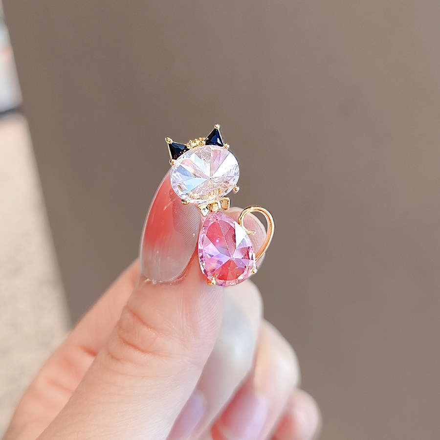韓国の気質ファッションサファイア猫のブローチには、ダイヤモンドのスーツの胸の花が飾られています。