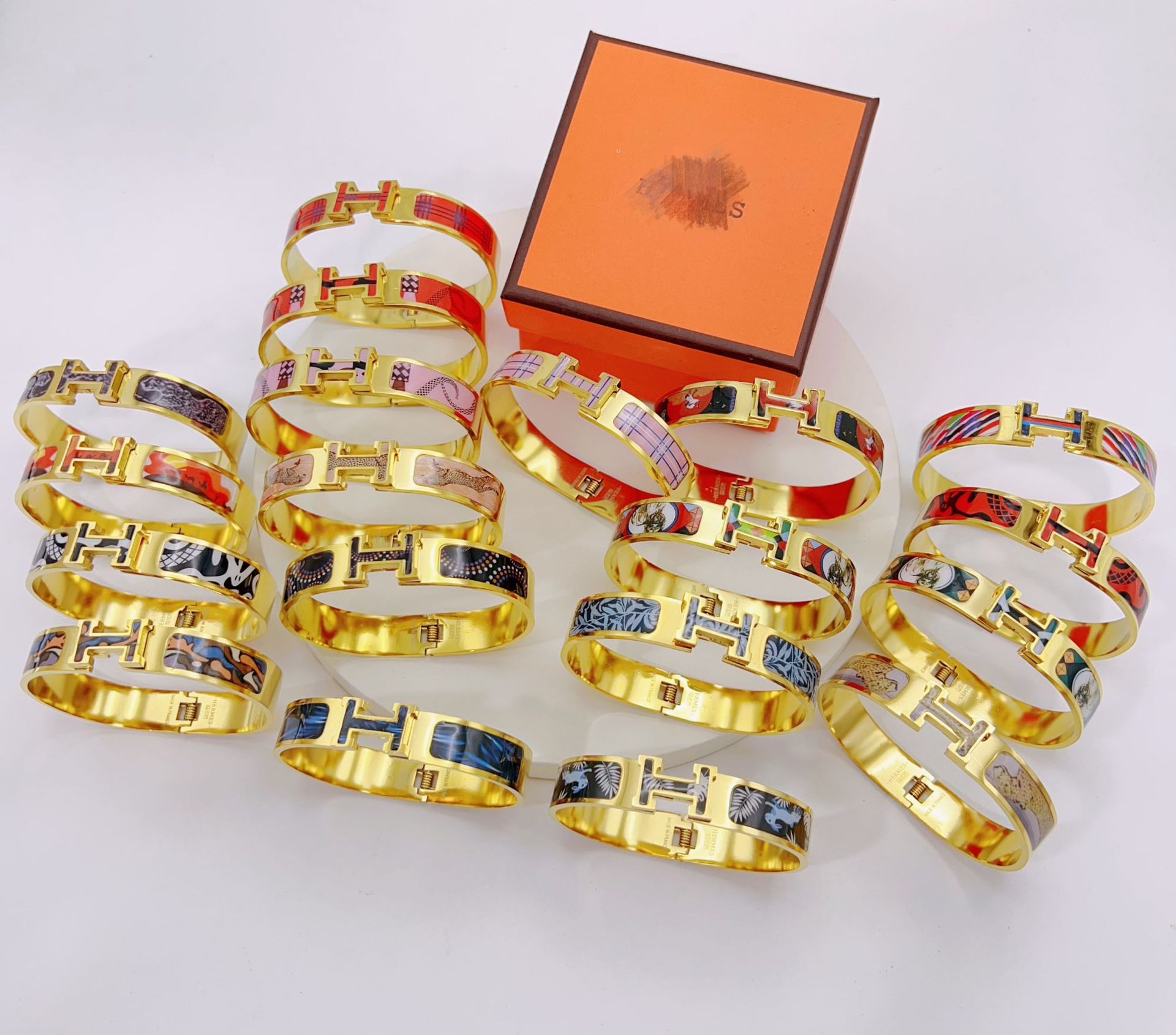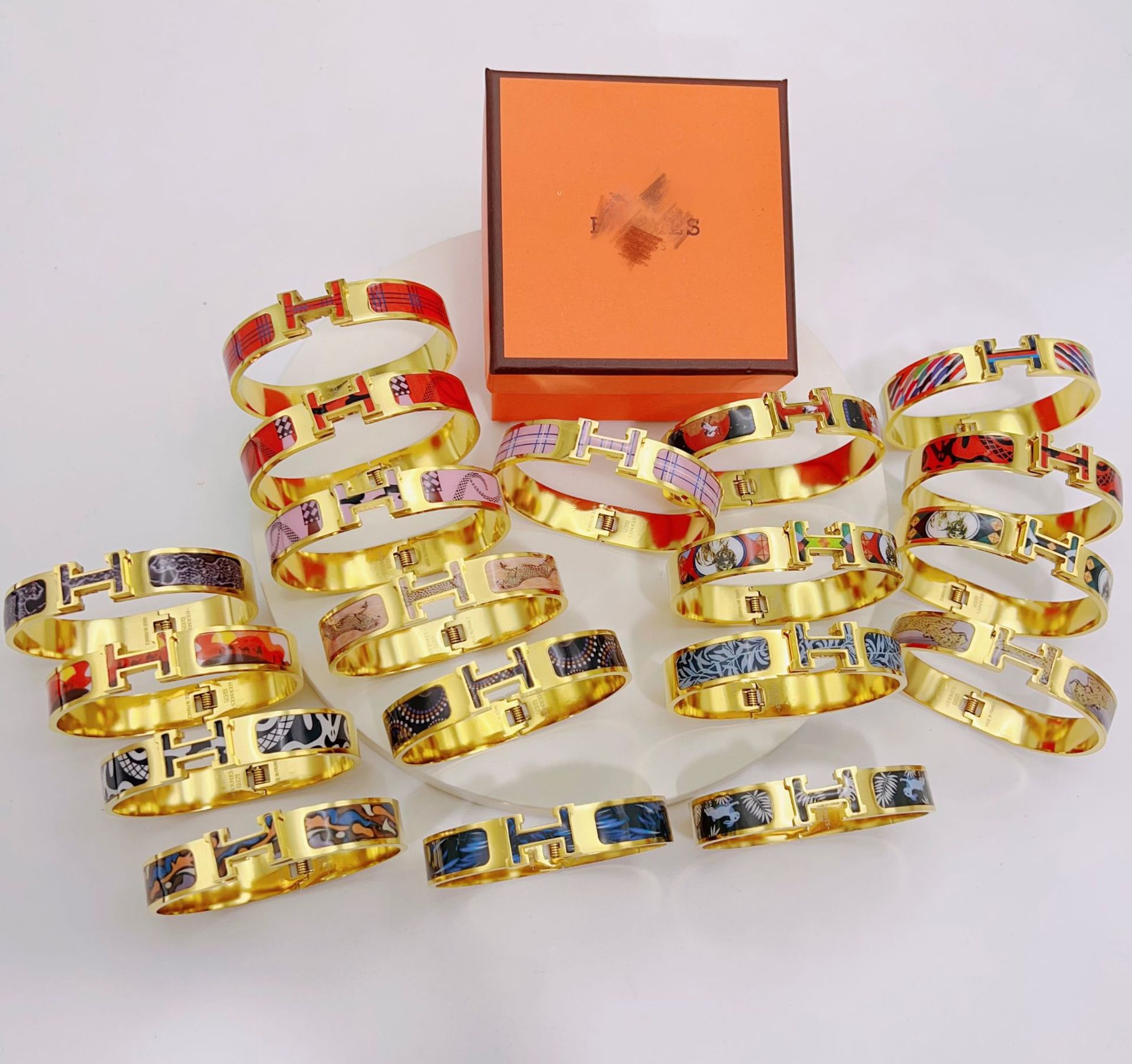 2024エナメルカラー図中号アルファベットブレスレットlogo真空メッキ18k色あせないチタン鋼アクセサリークロスボーダー