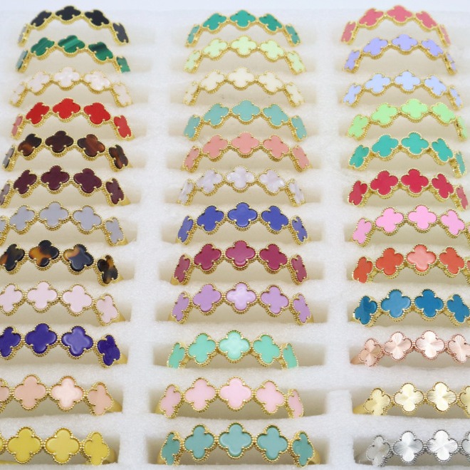 起爆金2025年に四つ葉のクローバーネックレスのイヤリングを入れた指輪セット欧米のシンプルな鎖鎖工場のロット
