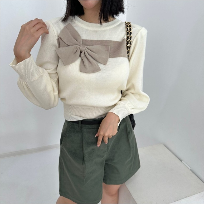 2024新型蝶結びレースvネック長袖日焼け止め秋の修身はやせています。