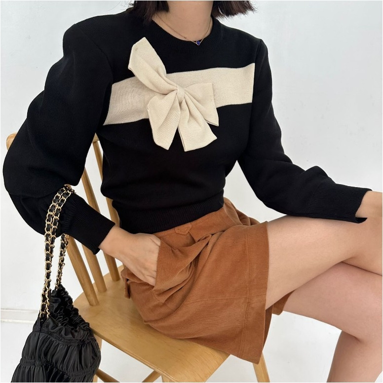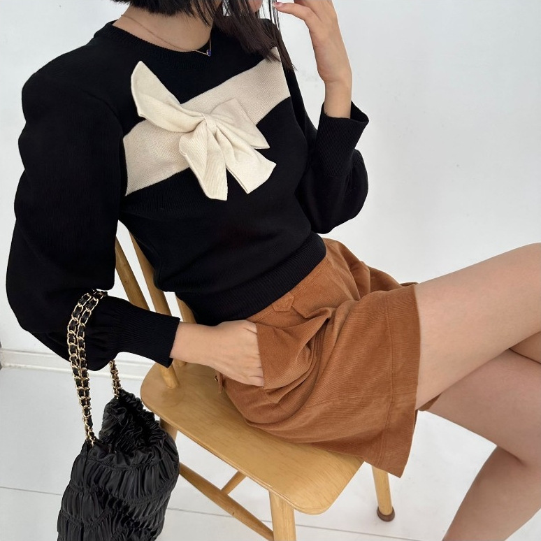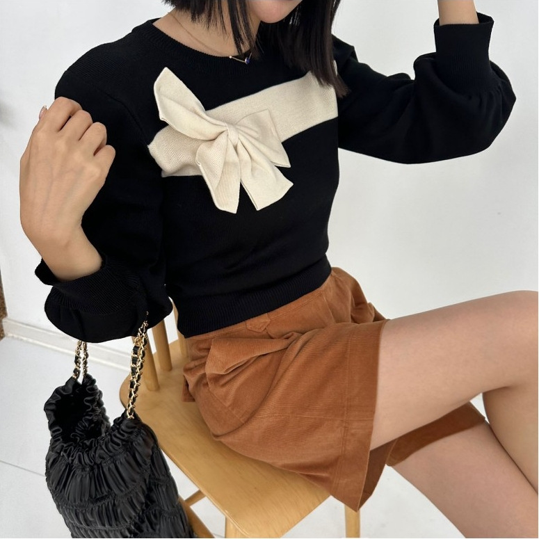 2024年純欲風蝶結びのレース付きtシャツの早秋のスリムなショートファッションの上着ins