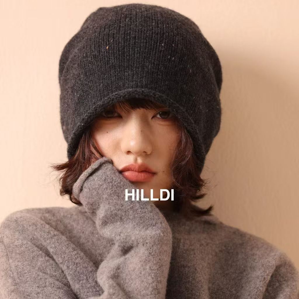 100%纯羊毛冷帽女 新款秋冬保暖护耳月子帽 显脸小毛线针织堆堆帽