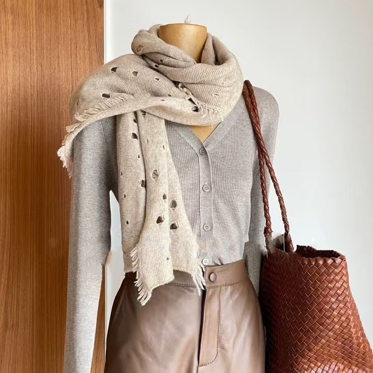 韩国高端时尚羊毛混纺针织围巾保暖长款气质披肩百搭轻奢舒适围脖