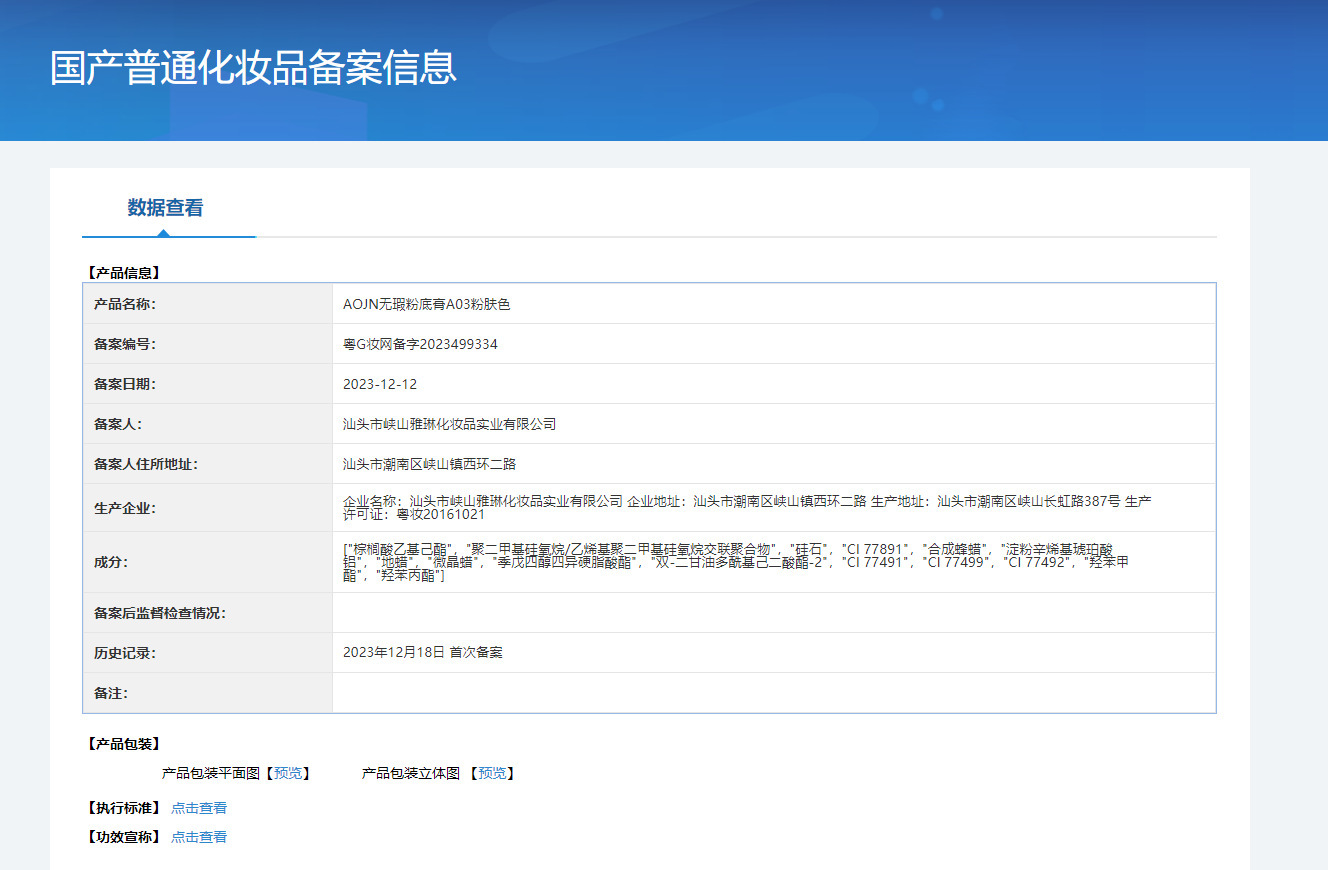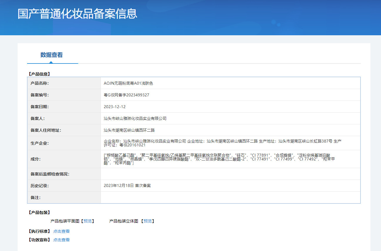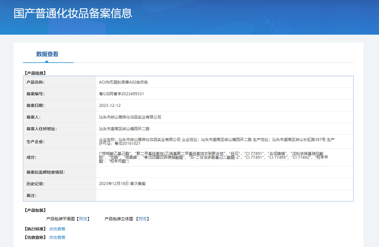 特殊化粧品登録証番号 広東省Gメイクアップネットワーク準備番号 2023421615