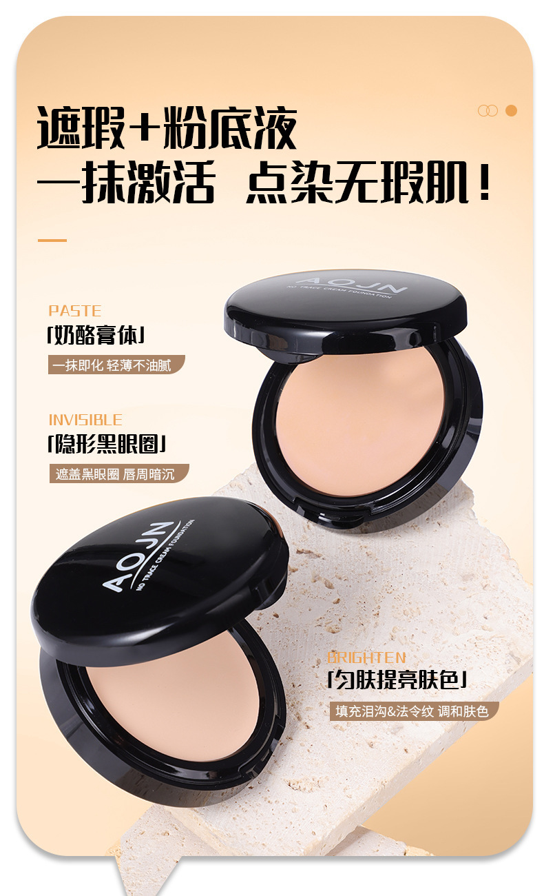 跨境热销款AOJN无痕粉底膏防水控油遮瑕水润轻薄柔焦定妆厂家批发