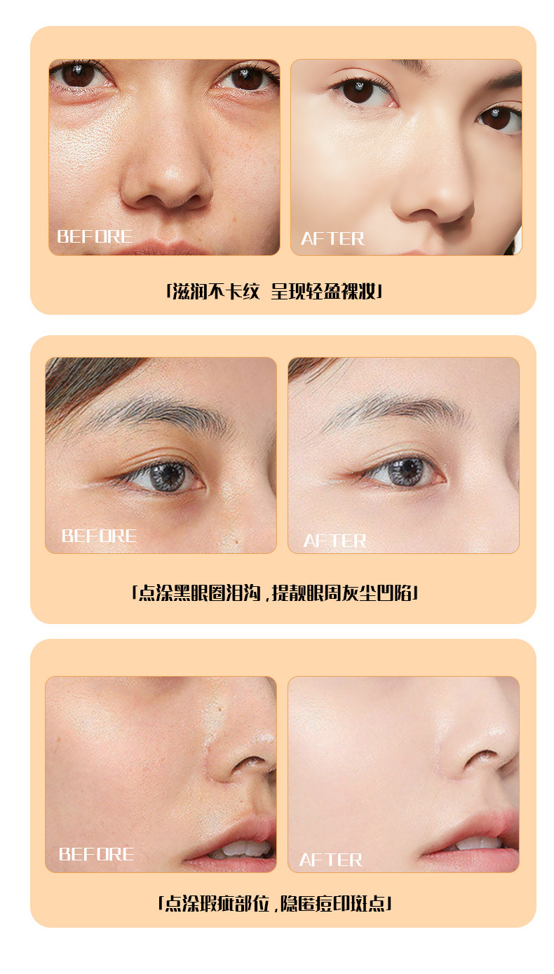 効能 防水,コンシーラー,長持ちする,肌の色合いを修正する,目に見えない毛穴,しっとり軽い