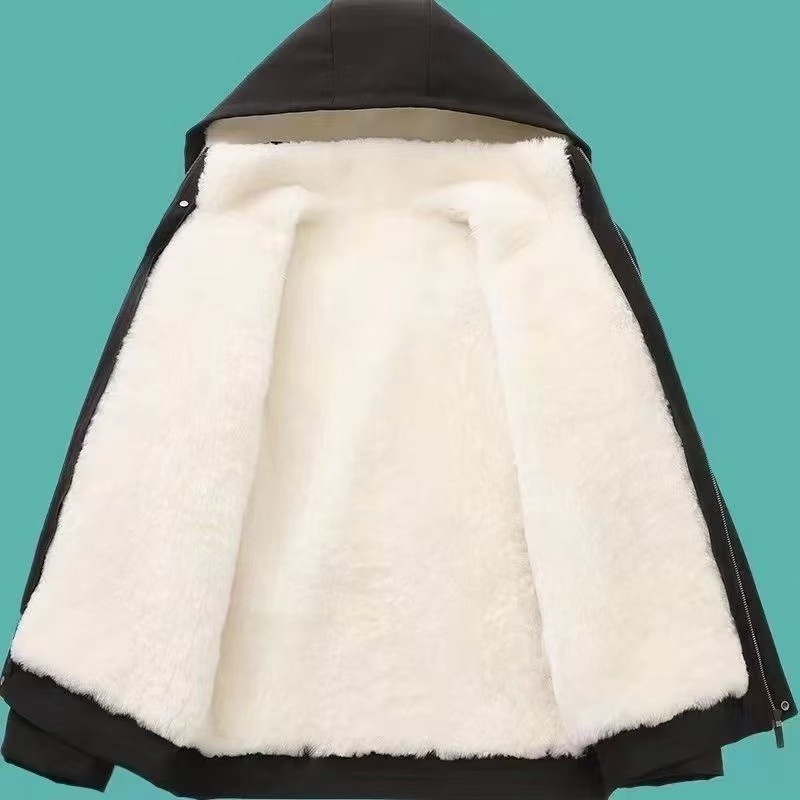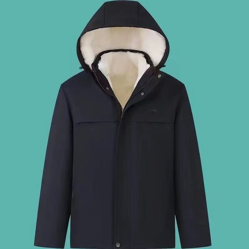 羊の皮の中の長いタイプの綿入れの中年の男性のパーカーは厚い内の胆の帽子を厚くしてカジュアルなビジネスの保温のコートを取り外します。