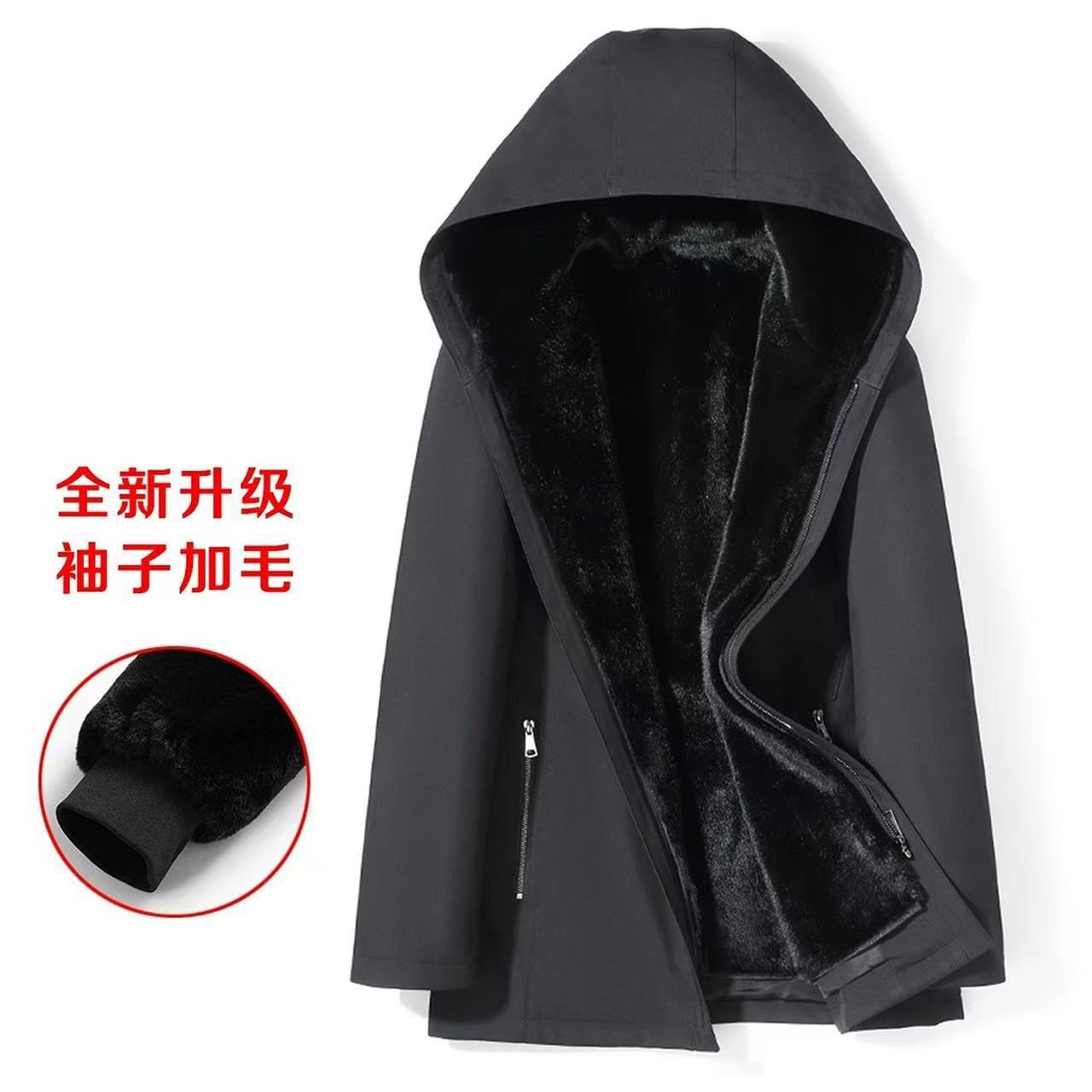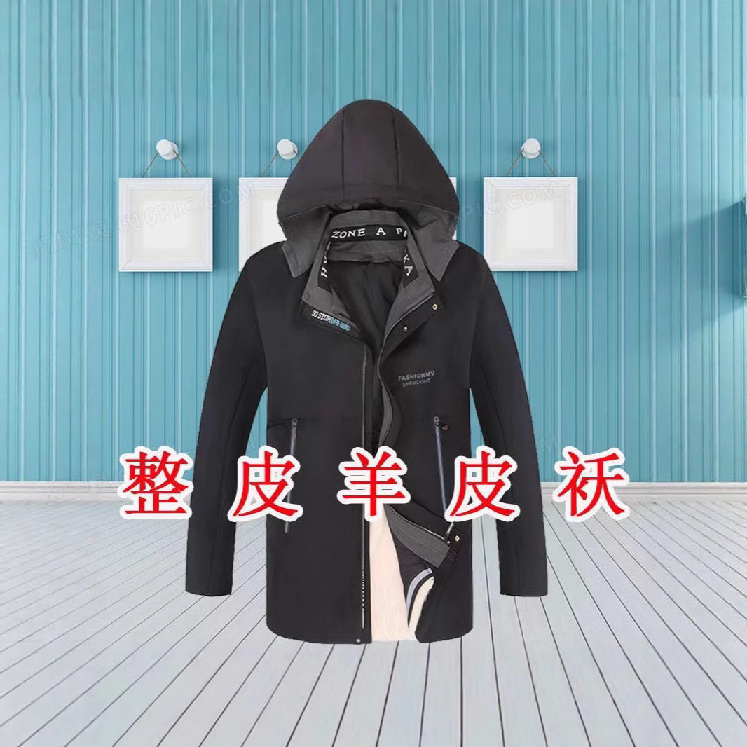 中高年向け保温性抜群の高級取り外し可能裏地付きジャケット メンズ 冬物人気新作 羊革綿服