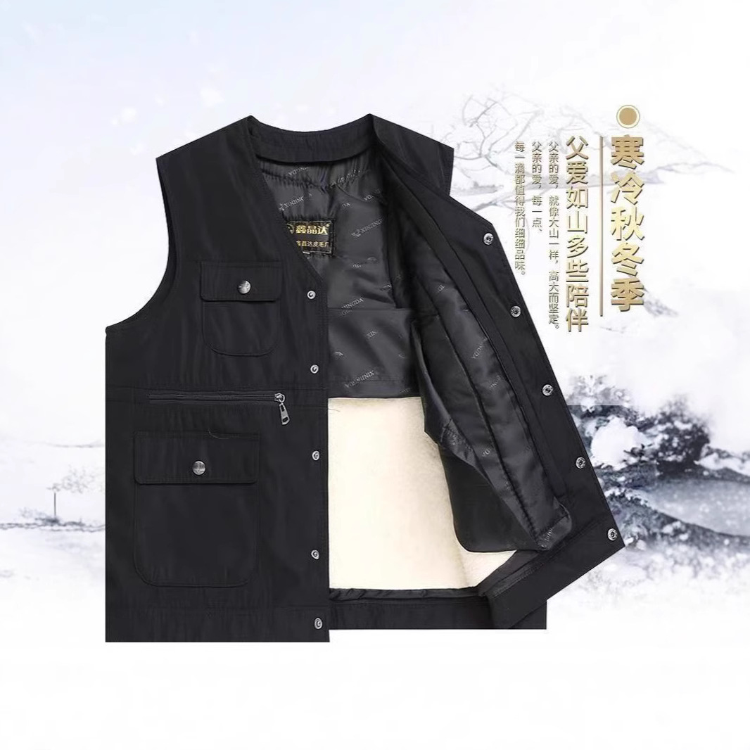 ウールベスト男性中高年毛皮一体秋冬保温ベストの外に馬を着て、お父さんの綿の肩を厚くします。