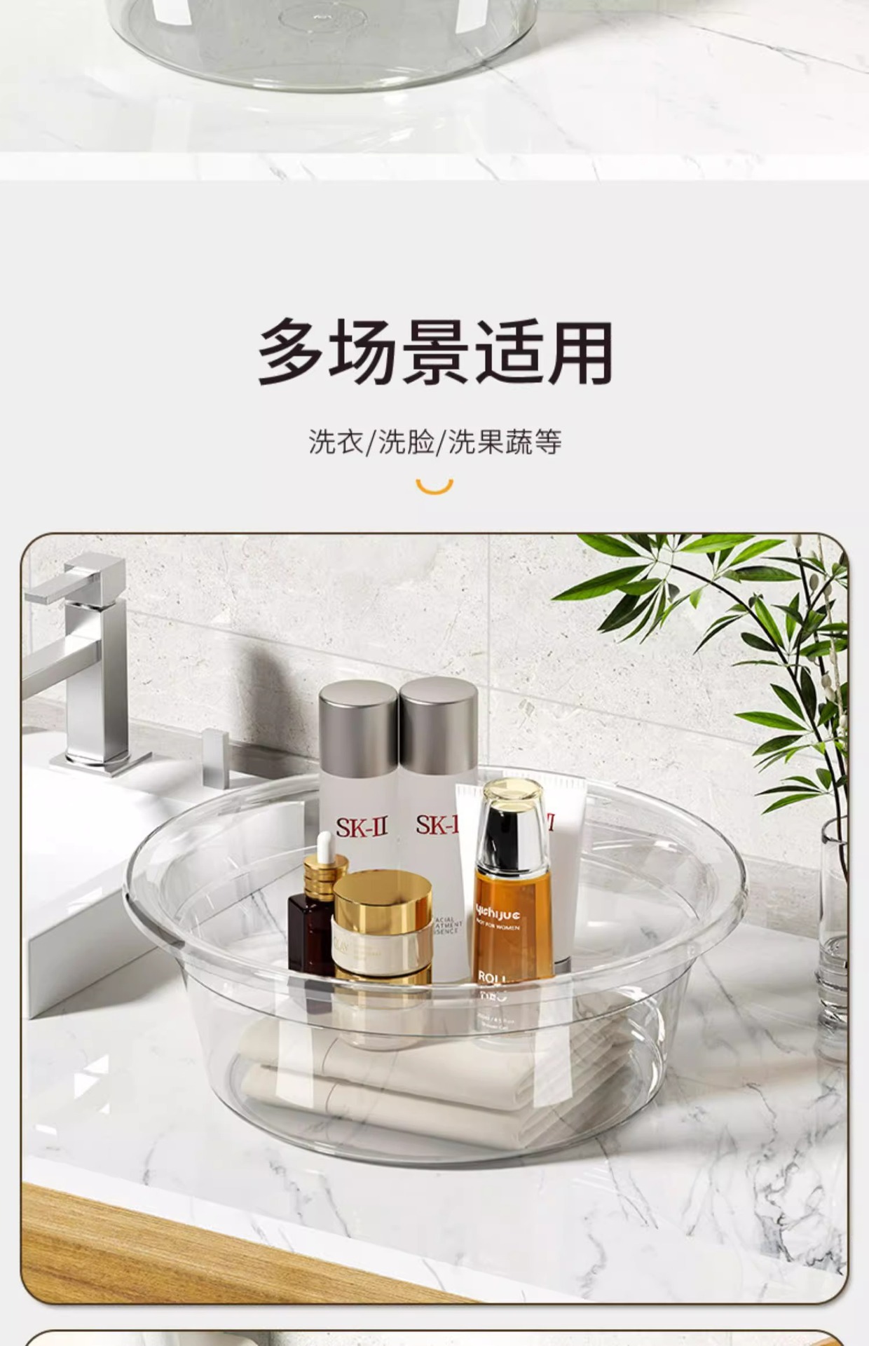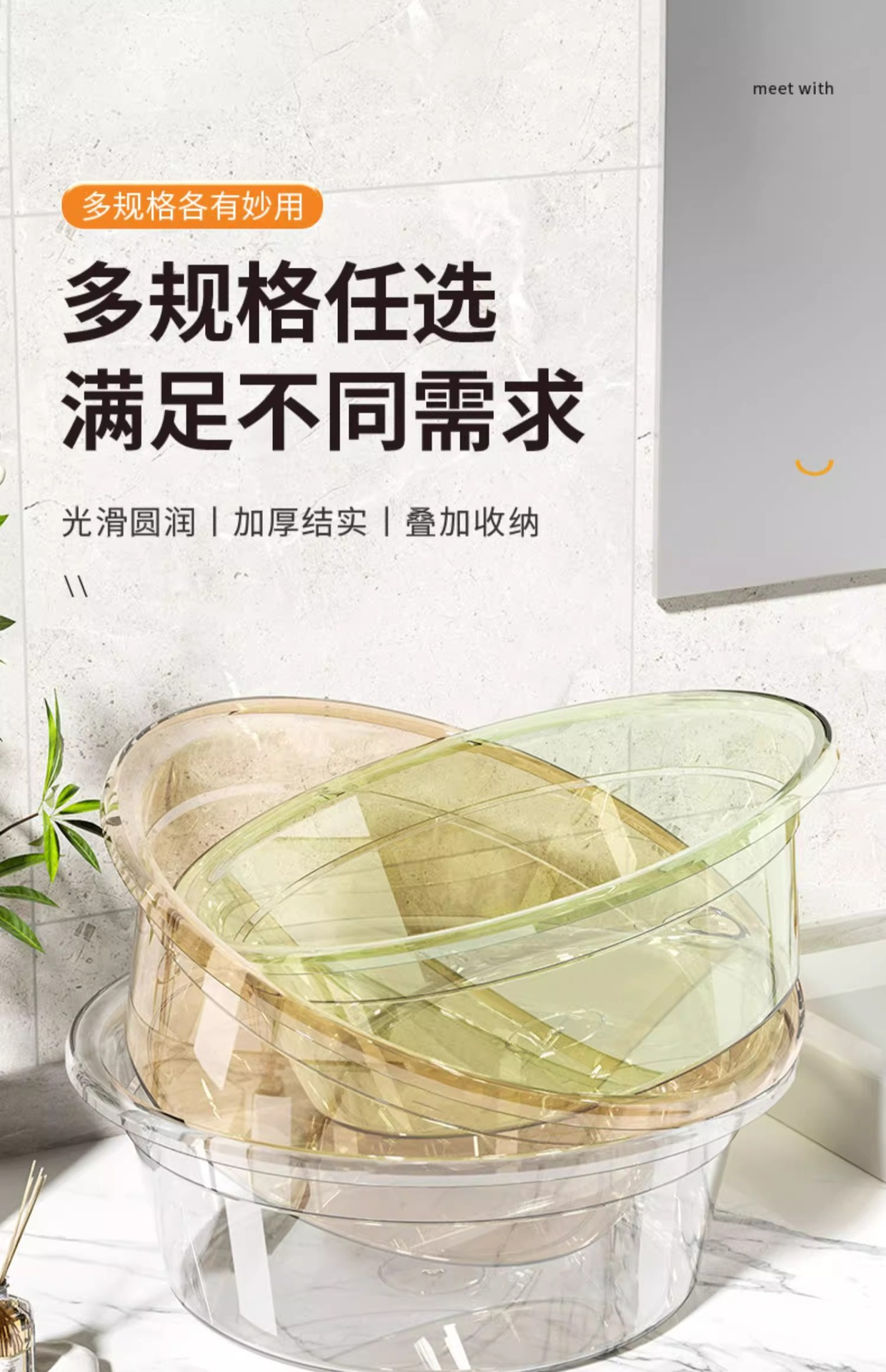洗面器家庭用透明プラスチック増粘キッチン洗面器野菜洗い学生寮大型洗濯洗面器ベビー足洗い桶