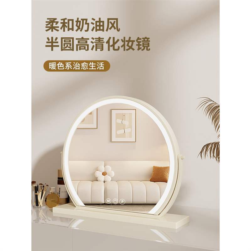 クリームスタイルの特殊な形状のミラー LED 寮の寝室の補助光化粧鏡ライト付きホームデスクトップ美容スマートメイクアップ