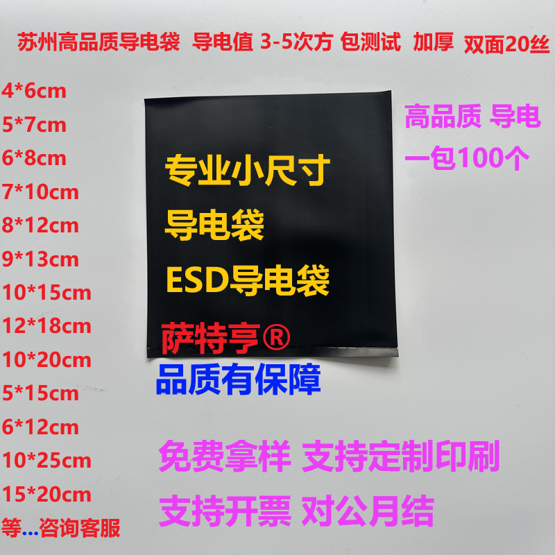 ESD导电袋黑色防静电PE袋黑色导电袋黑色静电袋加厚黑色炭黑袋cm
