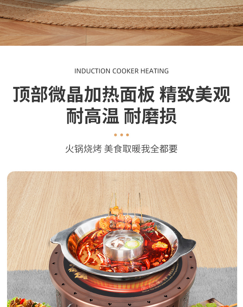 围炉煮茶五面取暖器取暖炉烤火炉家用室内烧烤炉二合一烤火器