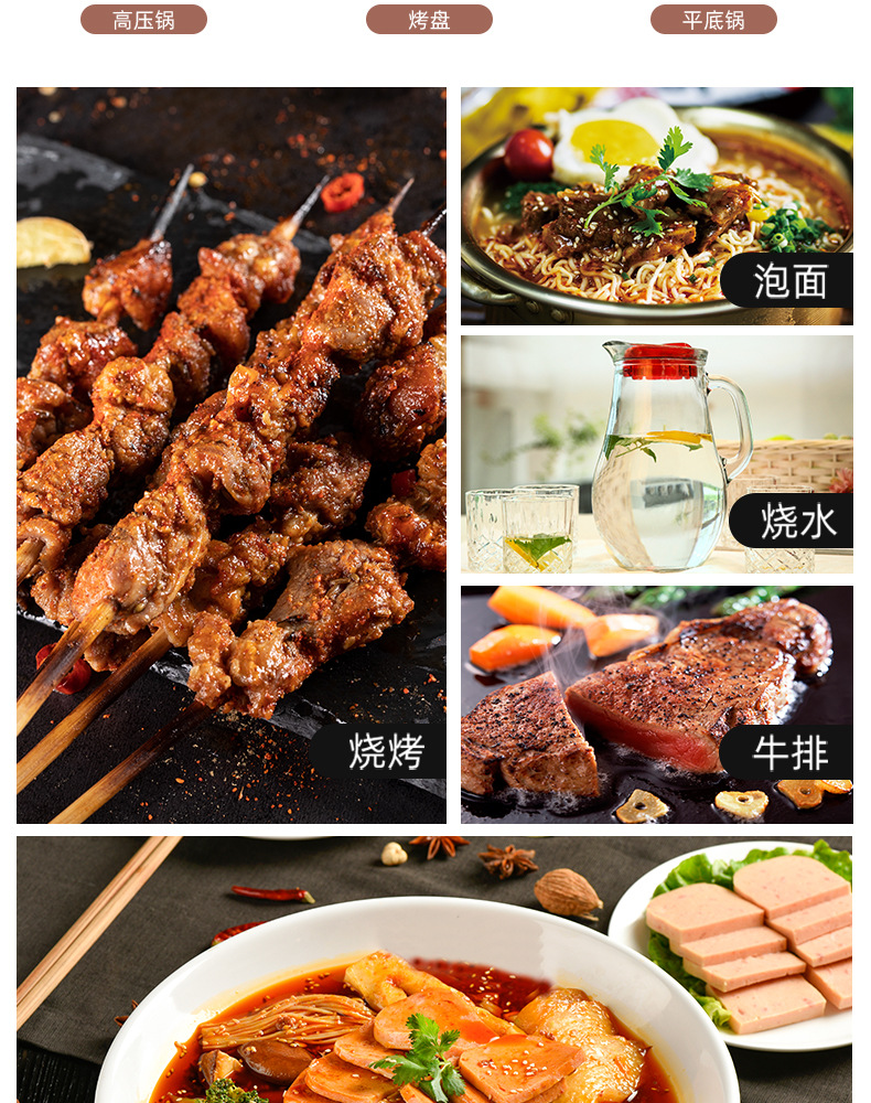 小さな丸い5面 - 上部に4つのランプ(調理不可),高級5面微結晶パネル(調理可能),Supreme【ダブル無段階温度制御】鍋BBQタイプ(調理可能)