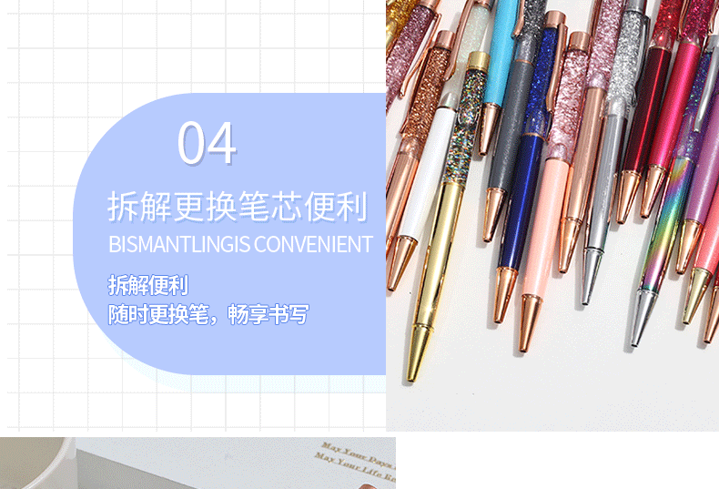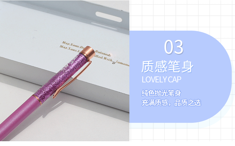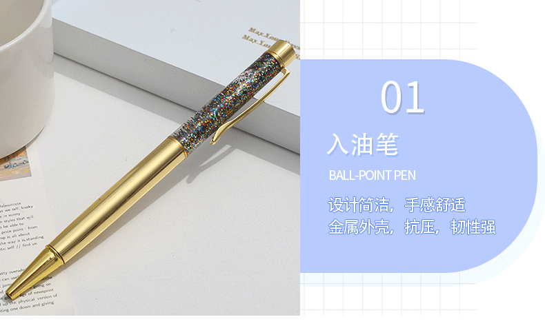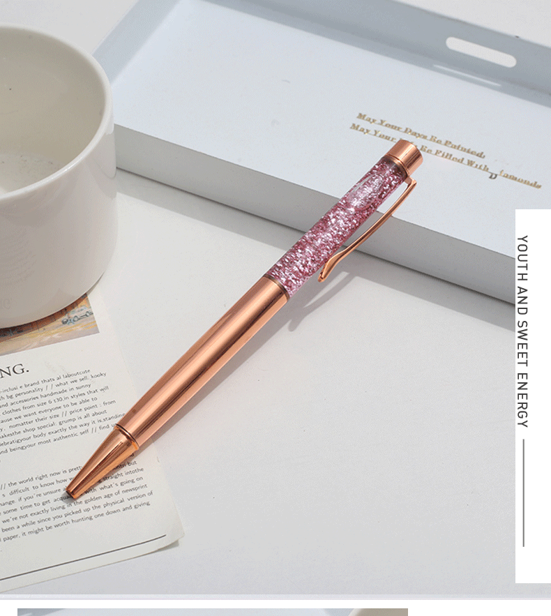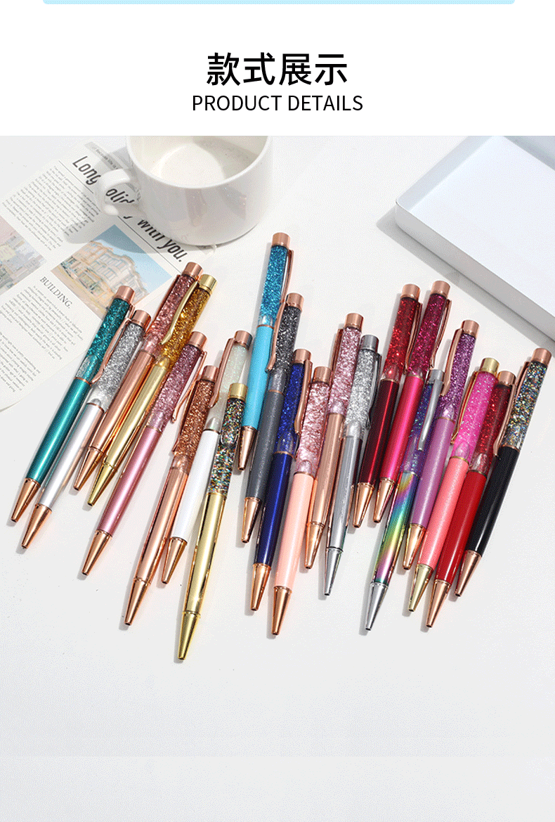 創意的な金粉のオイルペンは鮮やかな水晶の流砂のボールペンの高い顔の値を押して乾いた花の贈り物のペンの現物の卸売りを押します。
