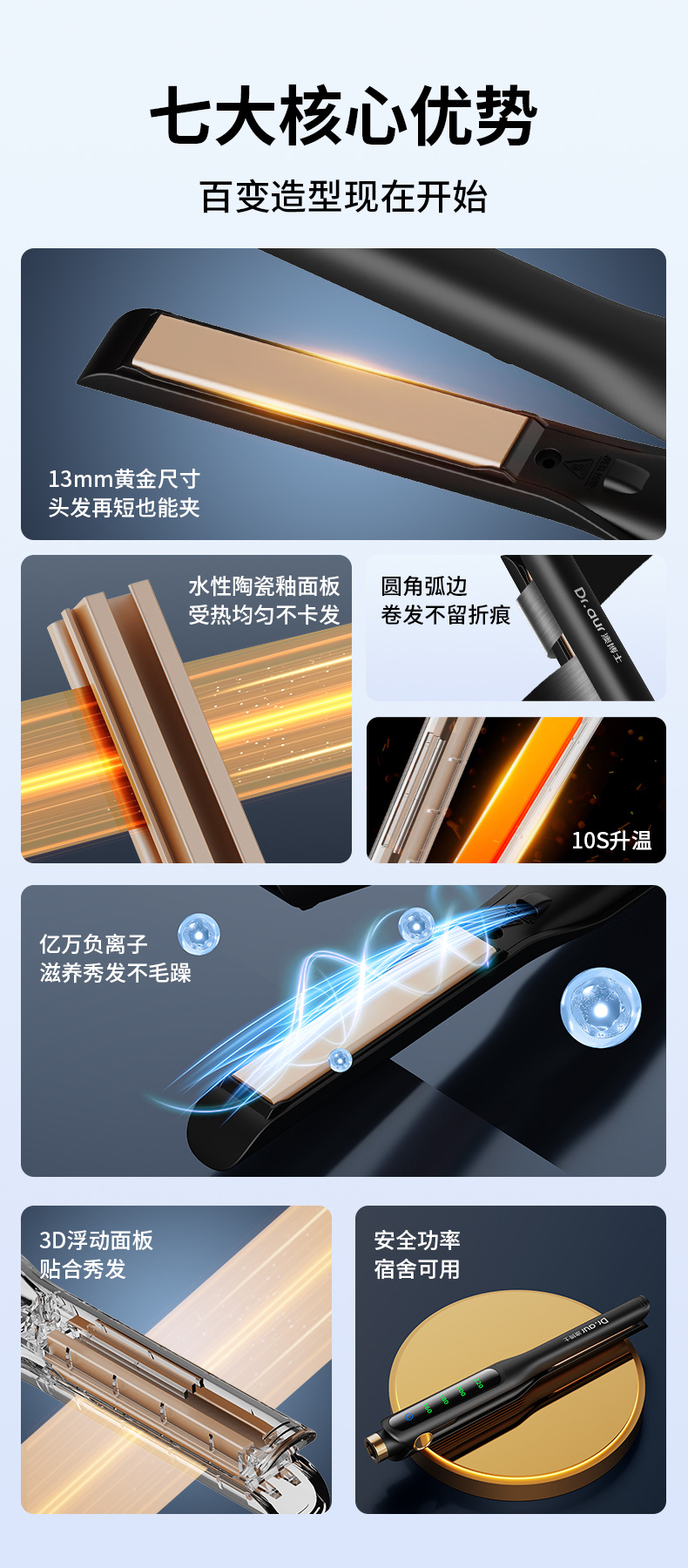 敏煌男生直板夹卷发棒男士用夹板迷你小型负离子烫卷直两用神器