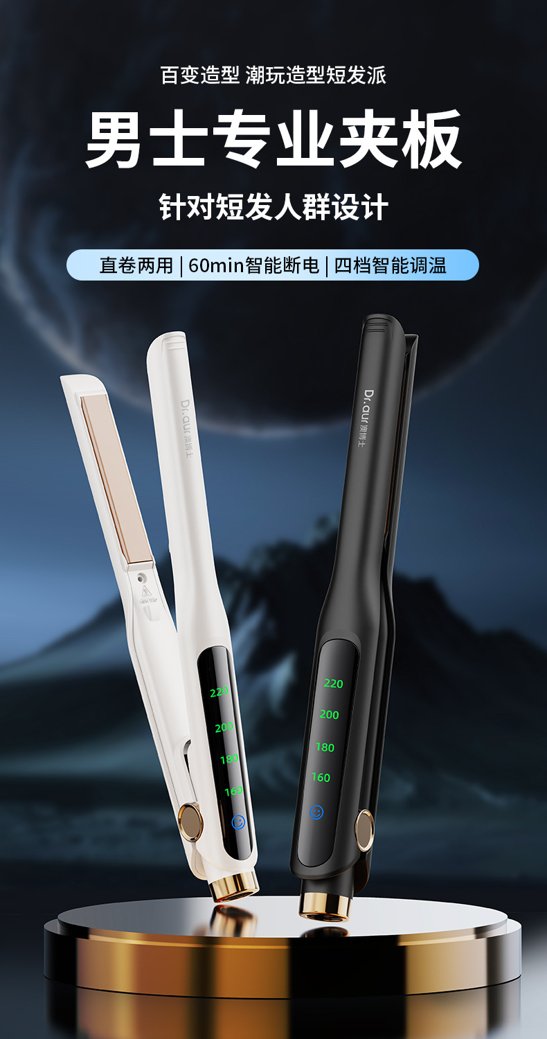 外贸迷你直板夹蓬松夹板男士专用直发夹板直卷两用夹发板跨境可用