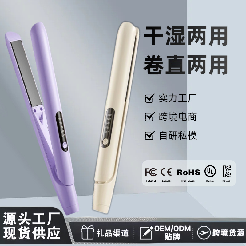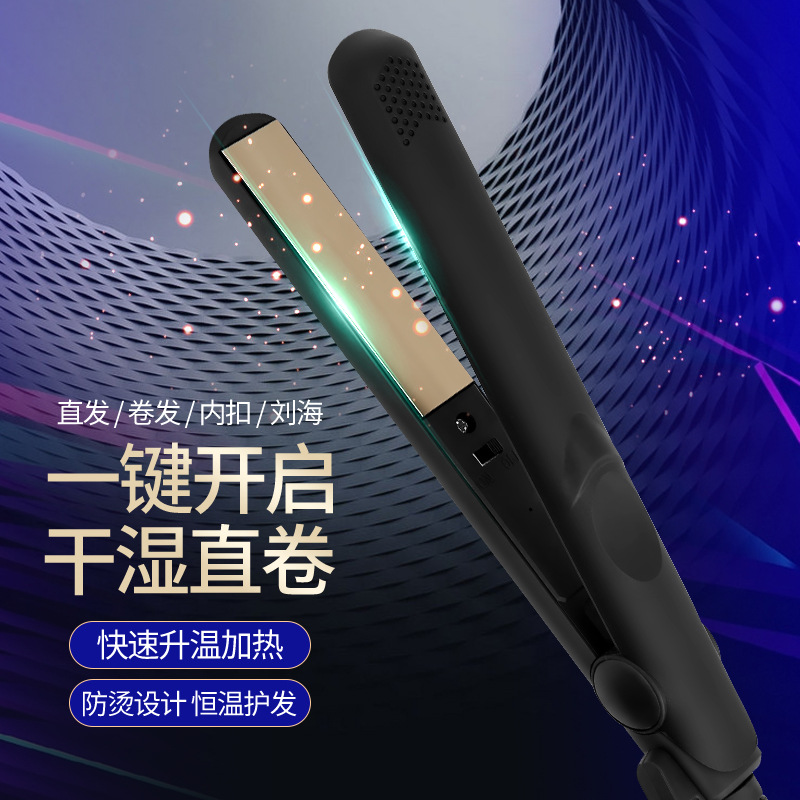 跨境直卷两用直发器迷你家用不伤发电夹板干湿两用直发器工厂源头