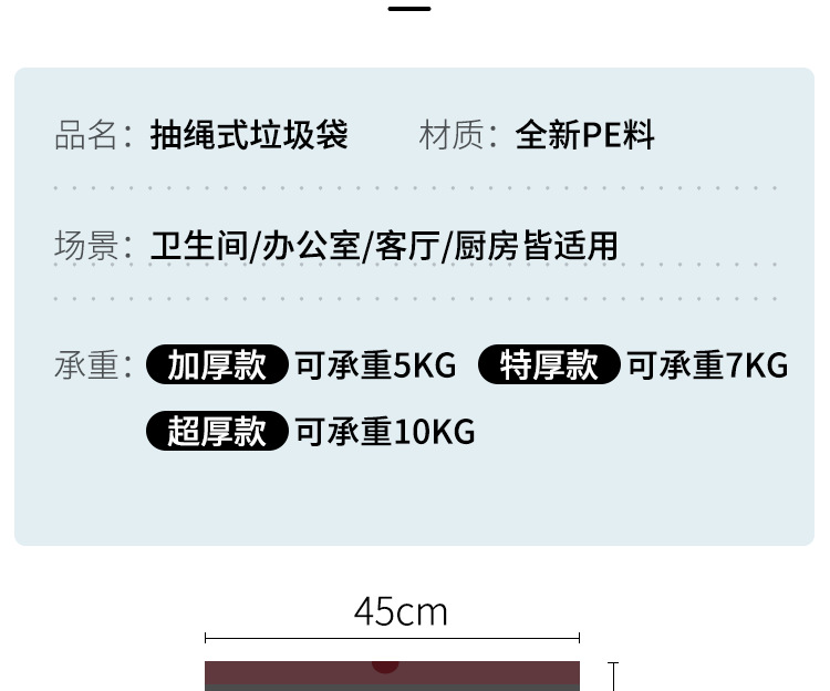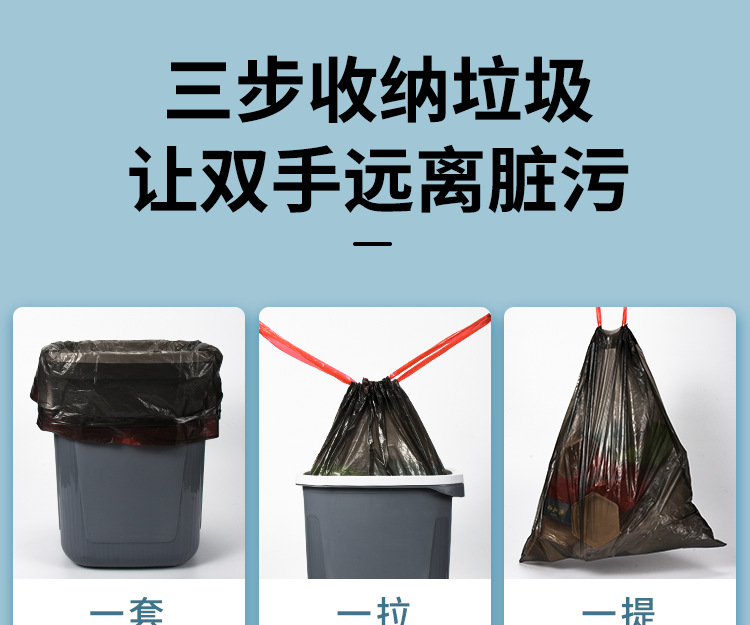ロープを引くゴミ袋家庭用大型手提げ式厨房業務用学生寮の厚い清潔袋の黒色の実恵服