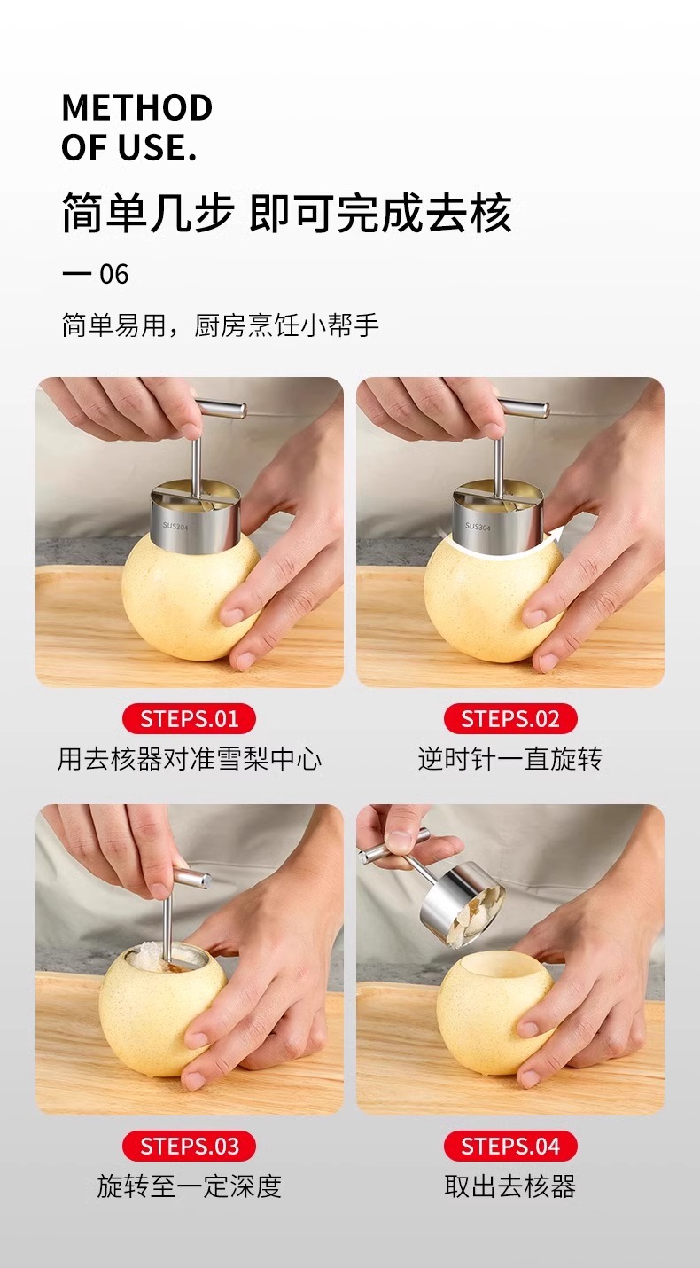 304不锈钢挖梨核神器去梨核苹果去核器水果掏心挖雪梨挖孔取去芯