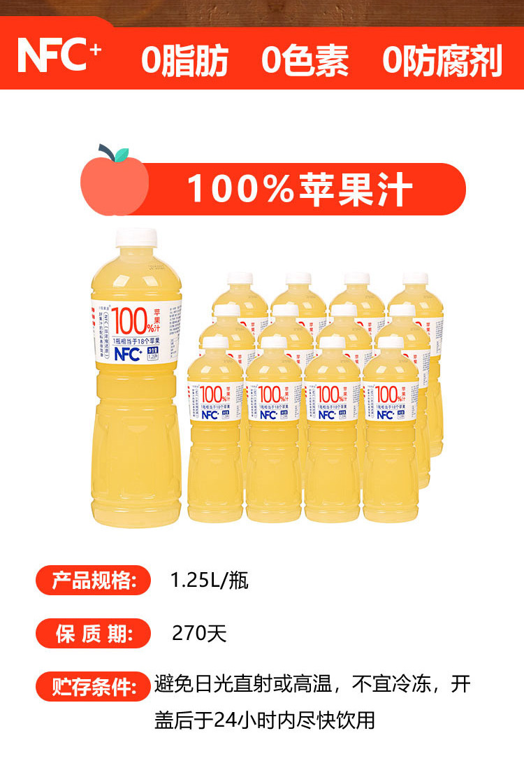 NFCリンゴジュース0添加防腐剤1250ml/大瓶バーベキューパーティー大飲料メーカー直販特価